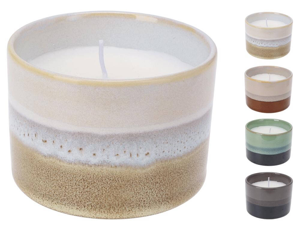 Κερί Q76900310 Σε πήλινο δοχείο με reactive φινίρισμα γλάσου, 10 x 7 cm, σε 4 επιλογές χρώματος, yellow, terra, green, grey.