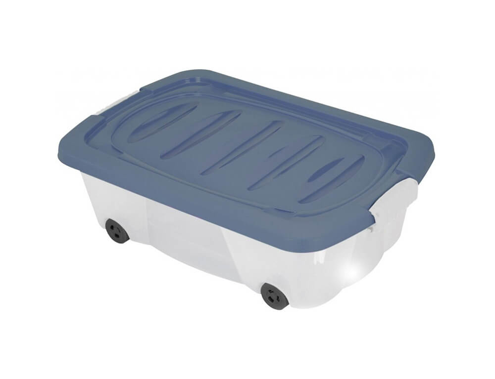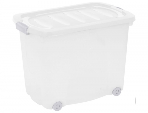 Κουτί αποθήκευσης πλαστικό ημιδιάφανο, με καπάκι και άσπρα χερούλια. Είναι πολύ πρακτικό για αποθήκευση διάφορων αντικειμένων, την τακτοποίηση του χώρου σας και μπορείτε να δείτε το περιεχόμενό του. Διαθέτει ρόδες για πιο εύκολη μεταφορά. Ιδανικό για αποθήκευση και κάτω από το κρεβάτι.