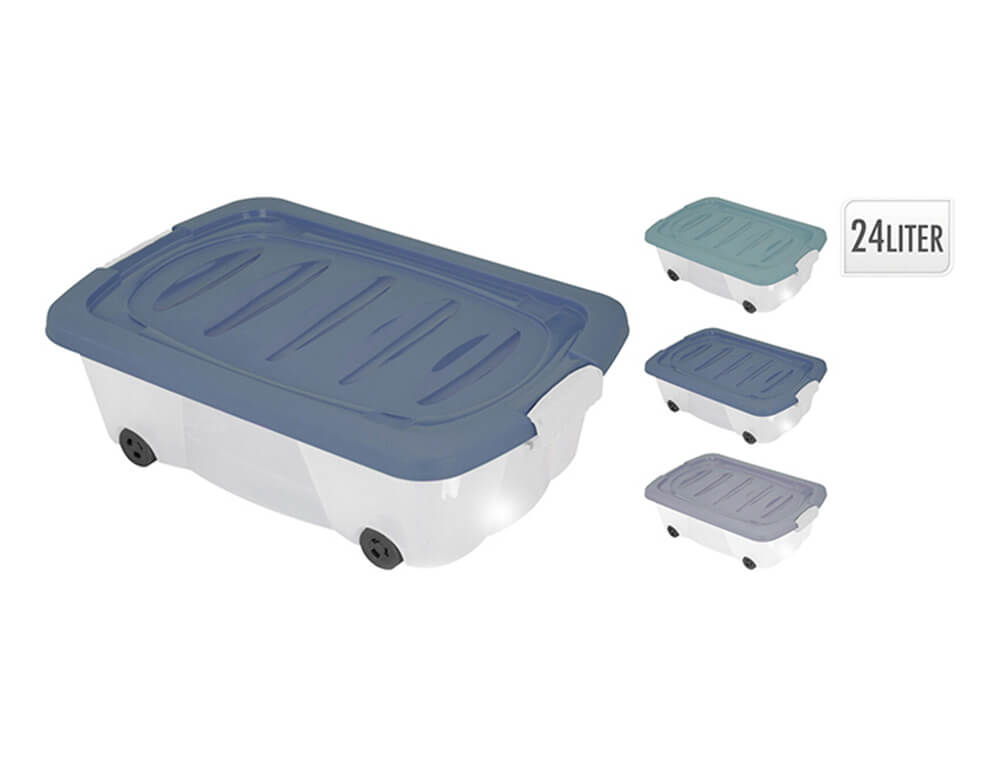 Κουτί αποθήκευσης πλαστικό με καπάκι και ρόδες , 24L, σε 3 επιλογές χρώματος