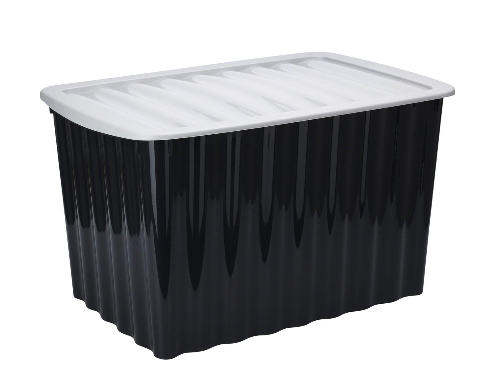 Κουτί αποθήκευσης με καπάκι , γκρι χερούλια και ρόδες. Είναι πολύ πρακτικό για αποθήκευση διάφορων αντικειμένων, την τακτοποίηση του χώρου σας και μπορείτε να δείτε το περιεχόμενό του. Διαθέτει ρόδες για πιο εύκολη μεταφορά. Είναι κατασκευασμένο από 90% ανακυκλωμένα υλικά και είναι 100% ανακυκλώσιμο.