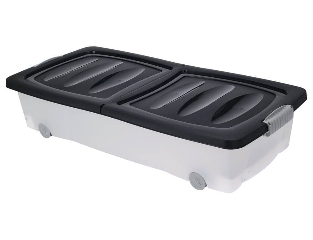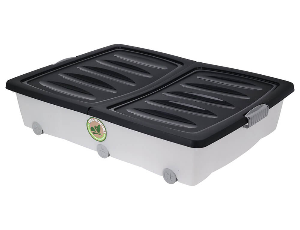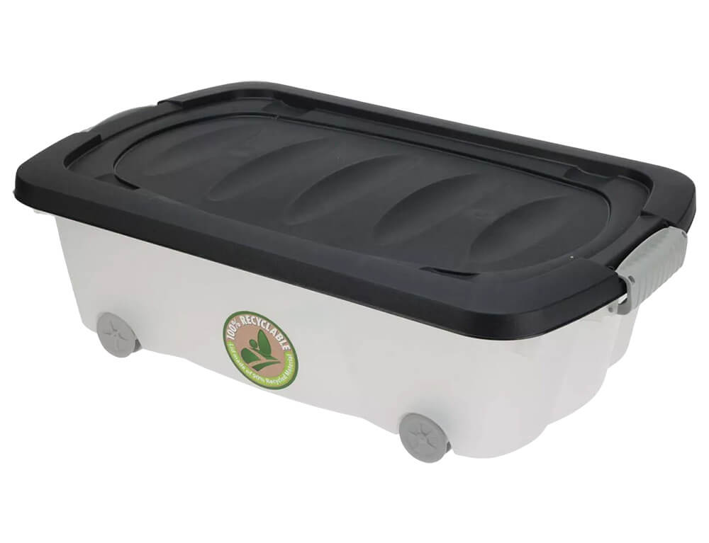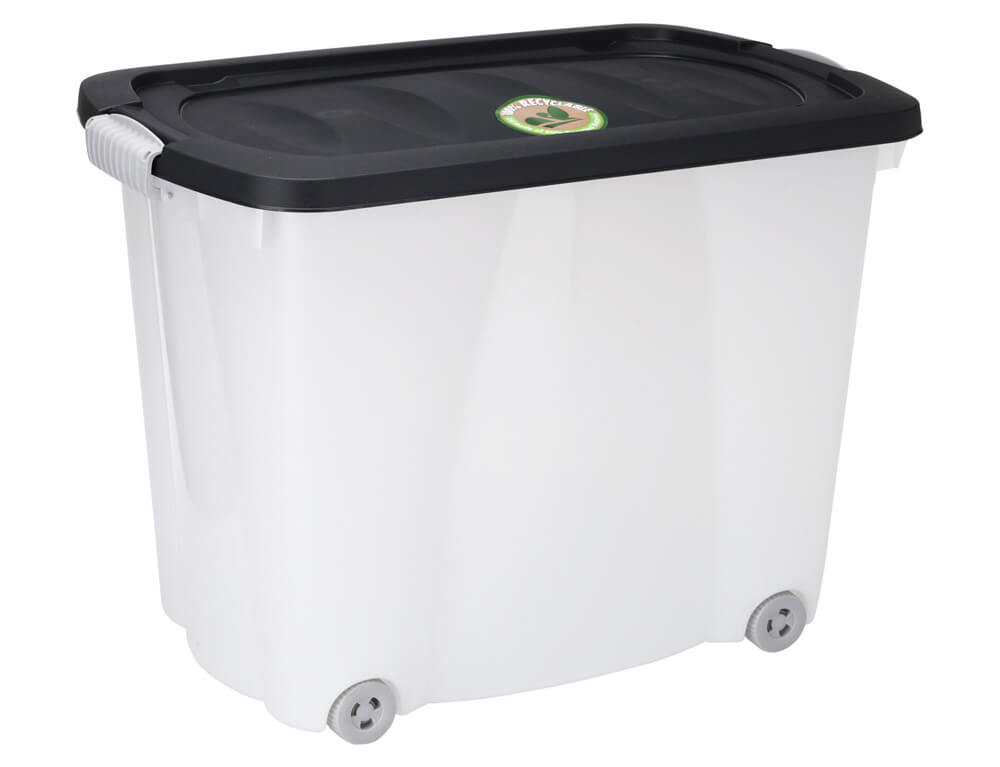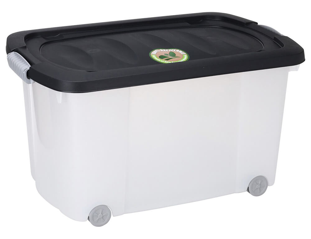 Κουτία αποθήκευσης πολλαπλών χρήσεων, ημιδιάφανο πλαστικό με καπάκι και ρόδες. Είναι πολύ πρακτικό για αποθήκευση διάφορων αντικειμένων και την τακτοποίηση του χώρου σας. Διαθέτει ρόδες για πιο εύκολη μεταφορά. Είναι κατασκευασμένο από 90% ανακυκλωμένα υλικά και είναι 100% ανακυκλώσιμο.