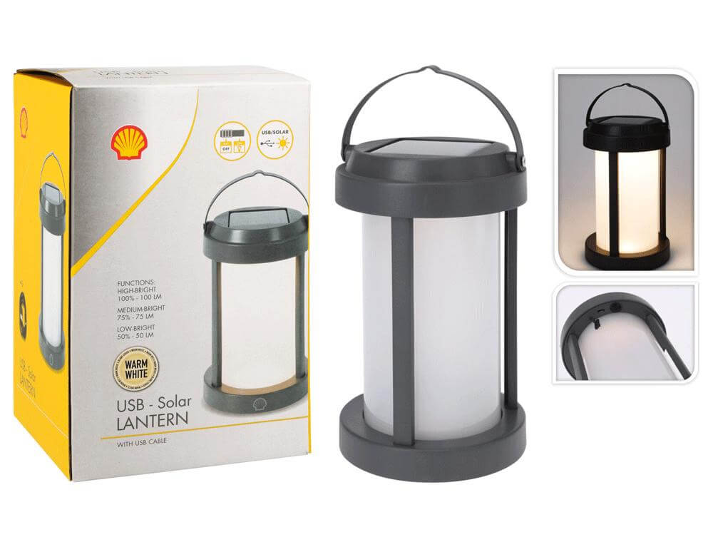 Εικόνα Hλιακό φανάρι κάμπινγκ Shell DT3300300 100 lumen, Με USB καλώδιο, φωτεινότητα 3 επιπέδων 100/75/50%, ένδειξης φόρτισης, γκρι