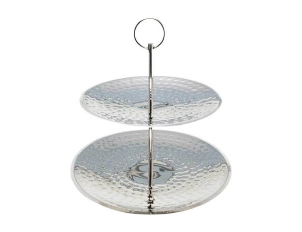 Eταζέρα 2 βάσεων 22170625 Από Ανοξείδωτο ατσάλι, σφυρήλατη, διαμέτρου 20 και 25cm. Πλένεται στο πλυντήριο πιάτων. Όμορφη και πρακτική επιλογή σερβιρίσματος για το κέικ και τα σνακ σας.