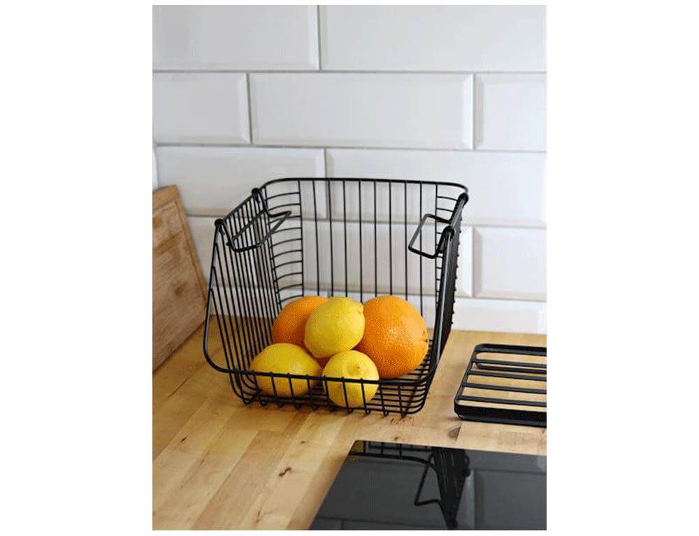 Μαύρο, με χειρολαβές, 27x29x22cm. Ιδανικό για την αποθήκευση φρούτων και λαχανικών τόσο στο κελάρι όσο και στο ντουλάπι. Παρέχει δυνατότητα στοίβαξης. Με διάκενα, επιτρέπει την κίνηση του αέρα, χάρη στην οποία τα λαχανικά και τα φρούτα μπορούν να διατηρούν την φρεσκάδα τους περισσότερο. Μπορεί εύκολα να μετακινηθεί και να τοποθετηθεί όπου χρειάζεται