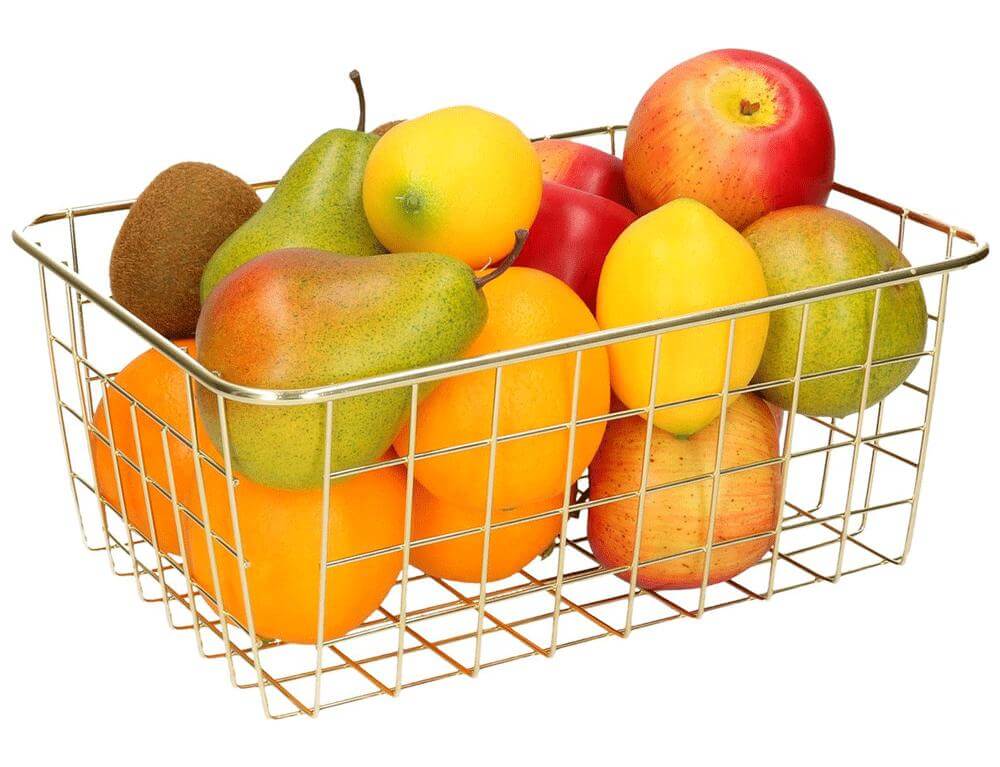 Μεταλλικό καλάθι ιδανικό για φρούτα και λαχανικά . Ένα κλασικό μεταλλικό καλάθι στο οποίο τα φρούτα όχι μόνο τοποθετούνται και αποθηκεύονται όμορφα, αλλά διατηρούν την φρεσκάδα τους, χάρη στα διάκενα, που επιτρέπουν την κυκλοφορία αέρα. Το καλάθι, εκτός από την πρακτική του λειτουργία, είναι επίσης μια μοντέρνα προσθήκη σε εσωτερικούς χώρους.