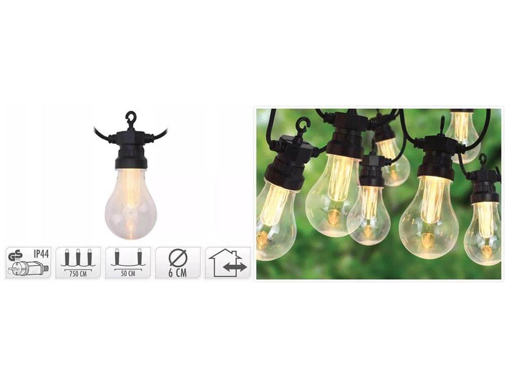 Τα φώτα LED θα είναι μια τέλεια διακόσμηση σε γάμο, πάρτι γενεθλίων, μπάρμπεκιου ή υπαίθριο πάρτι. Η διακοσμητική γιρλάντα με 20 LED λαμπτήρες είναι ιδανική για να κρεμαστεί σε εσωτερικούς και εξωτερικούς χώρους. Θα είναι τέλεια πρωτότυπη διακόσμηση για κήπο, βεράντα, μπαλκόνι, πέργκολα ή οποιοδήποτε δωμάτιο. Το βράδυ, το ζεστό φως του θα δώσει μια μοναδική ατμόσφαιρα και ο σχεδιασμός του θα υπογραμμίσει τον χαρακτήρα κάθε εσωτερικού χώρου. Η απόσταση μεταξύ κάθε λάμπας είναι 50 cm και το συνολικό μήκος είναι 7.5 m.