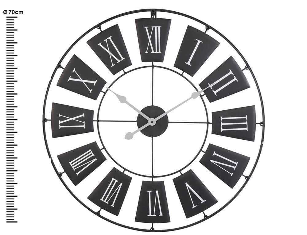 Ρολόι τοίχου Μεταλλικό, Aναλογικό με ρωμαϊκούς αριθμούς 70x2cm - Μαύρο