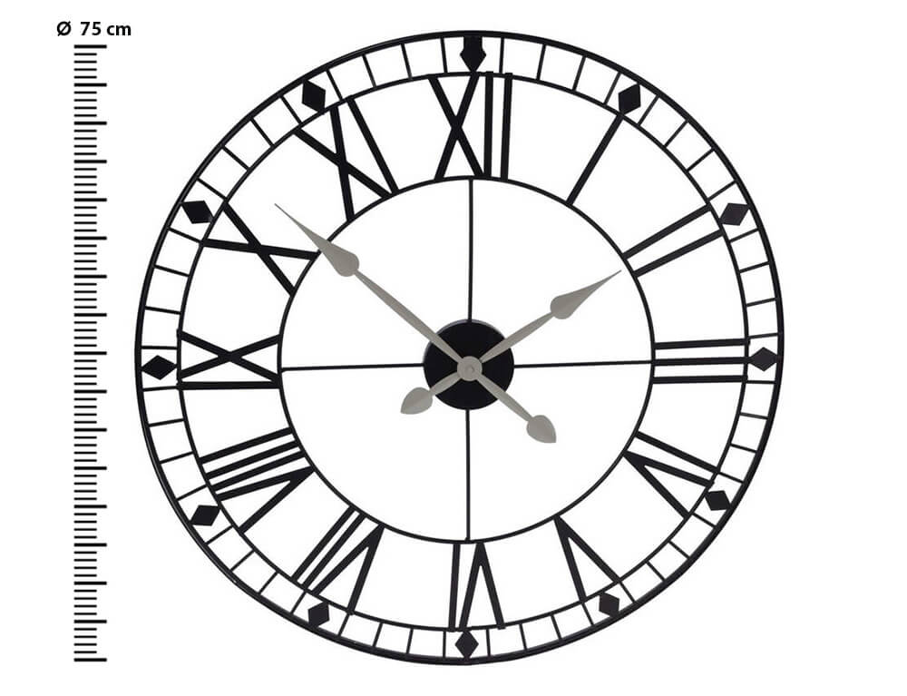 Ρολόι τοίχου Μεταλλικό, Aναλογικό με ρωμαϊκούς αριθμούς 75x2cm - Μαύρο