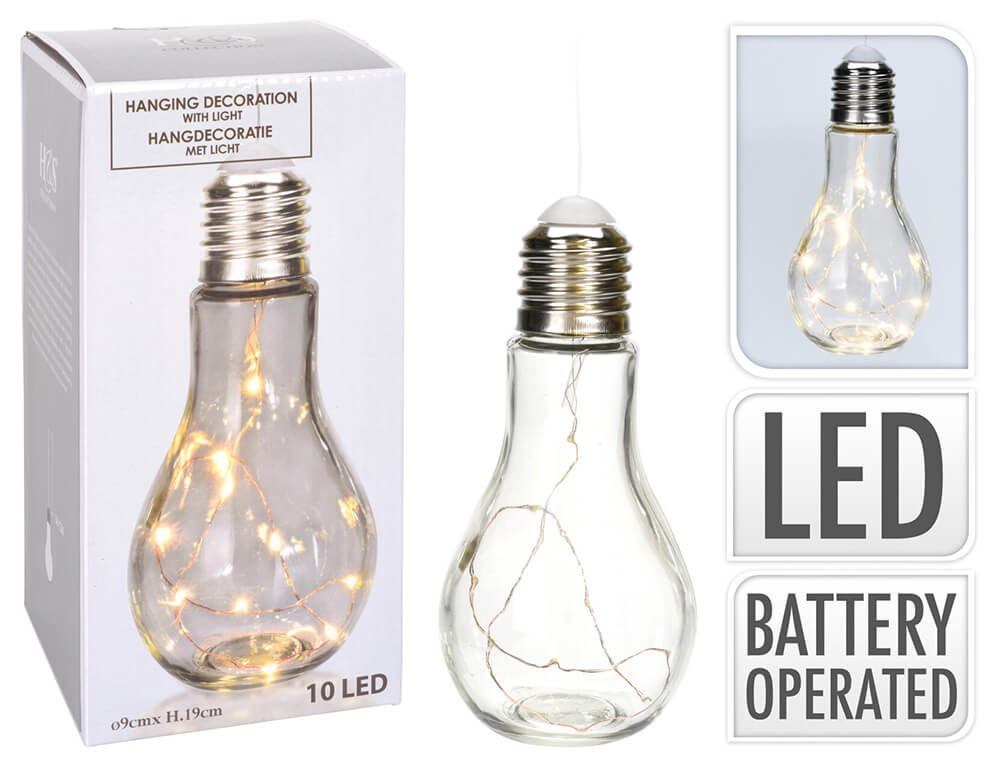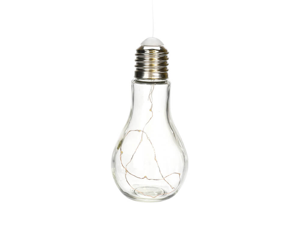 Όμορφη διακοσμητική λάμπα LED σε σχήμα αχλαδιού. Η λάμπα περιέχει ένα σύρμα με 10 φώτα LED που δίνει ένα ωραίο αποτέλεσμα και διαχέει ένα απαλό φως. Η λάμπα κρεμιέται εύκολα με ένα άγκιστρο που είναι ήδη συνδεδεμένο στη λάμπα. Το φως LED μπορεί να ανάψει και να σβήσει με ένα κουμπί στην υποδοχή του λαμπτήρα. Μπορείτε εύκολα να αντικαταστήσετε τις μπαταρίες ανοίγοντας το βιδωτό καπάκι. Περιλαμβάνει 2 μπαταρίες CR2032.