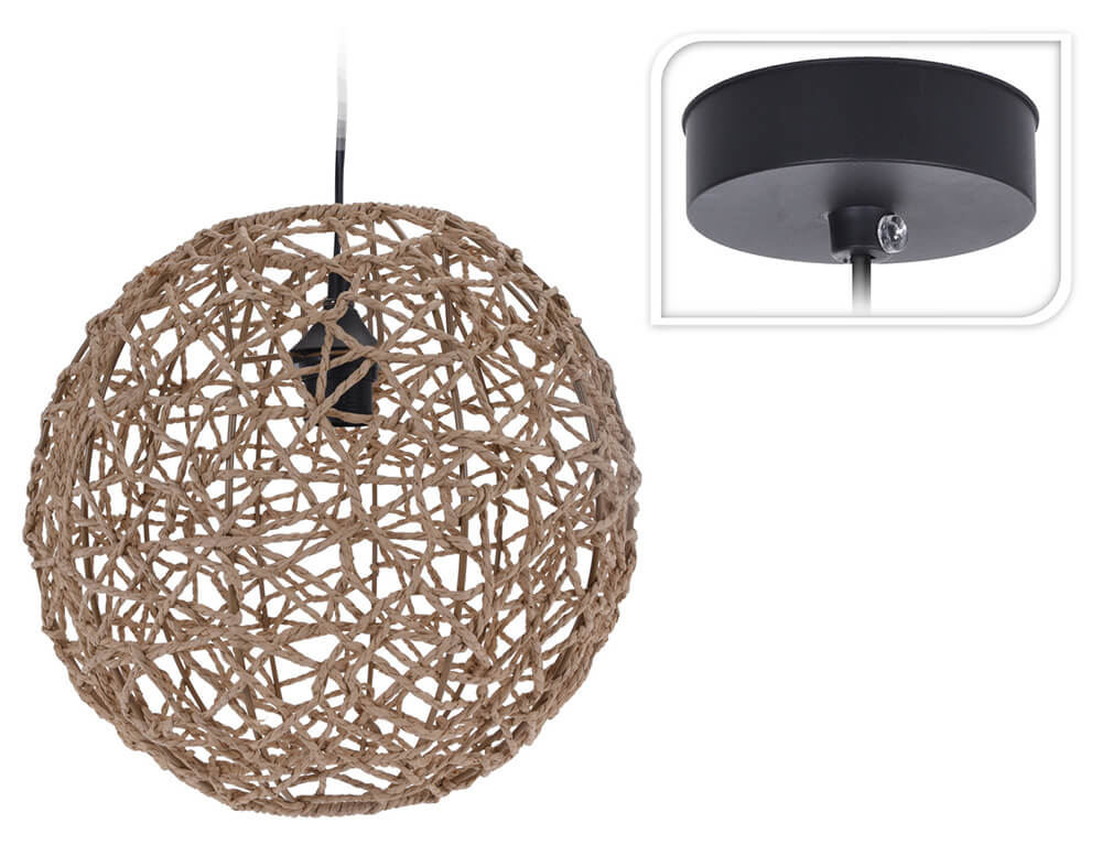 Φωτιστικό οροφής ρεύματος Ξύλο Willow/Rattan με λαμπτήρα Ε27 και διάμετρο 30cm - Καφέ