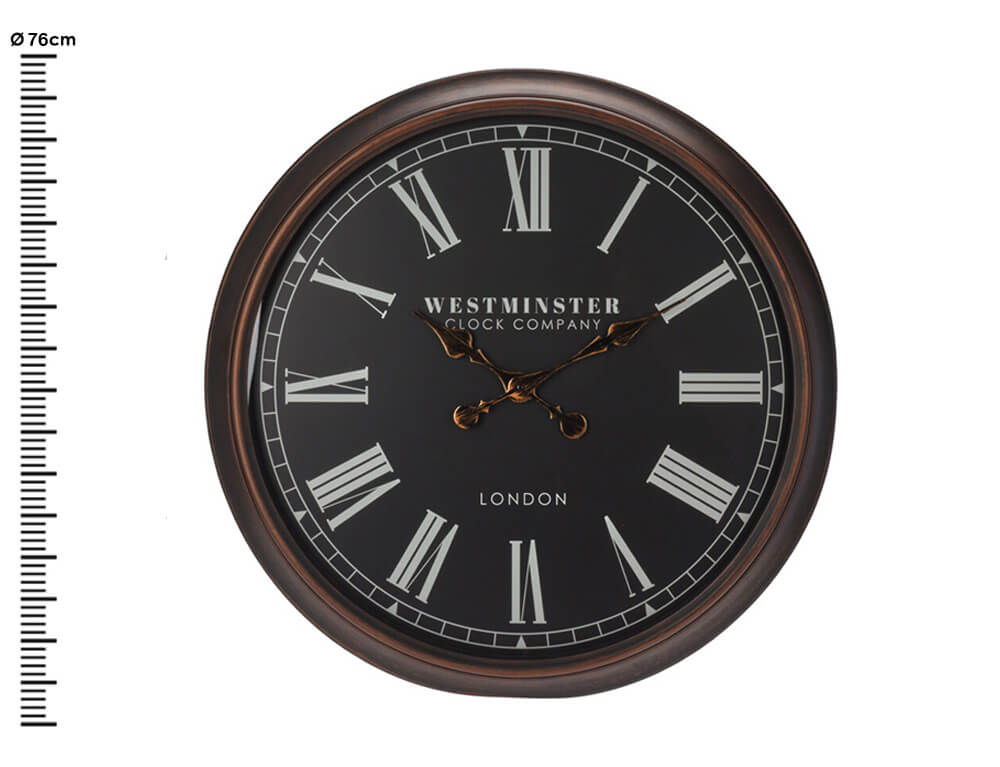 Ρολόι τοίχου Αναλογικό με ρωμαϊκούς αριθμούς - 76x5.7cm - Mαύρο/Καφέ
