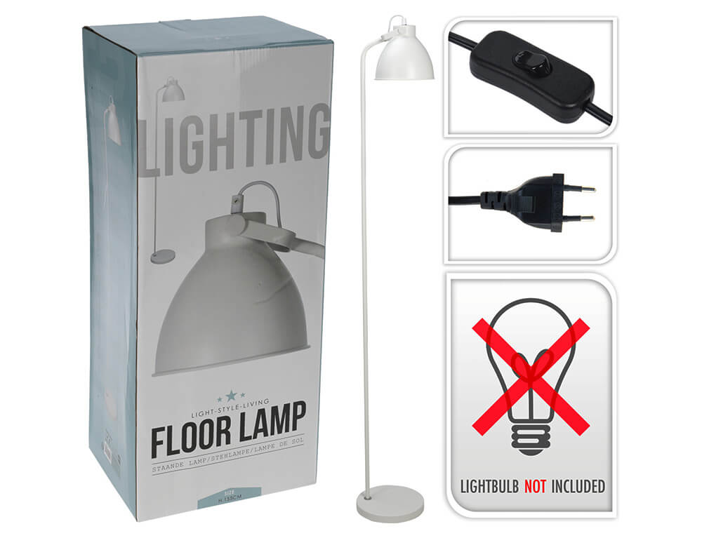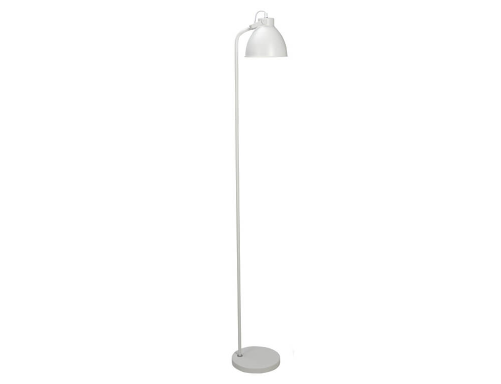 Ένα μοντέρνο όρθιο φωτιστικό που διακρίνεται από μινιμαλιστικό στυλ και απλή φόρμα. Ταιριάζει τέλεια σε αυστηρούς εσωτερικούς χώρους διακοσμημένους με βιομηχανικό στιλ. Το φωτιστικό είναι πολύ ευέλικτο, αφού μπορείτε να κατευθύνετε τη δέσμη φωτός όπου θέλετε.. Θα είναι τέλειο στο σαλόνι, στο υπνοδωμάτιο, στο παιδικό δωμάτιο, στο χολ, στο γραφείο ή στο γραφείο. Το μεταλλικό φωτιστικό δαπέδου έχει ένα ενδιαφέρον, μικρού μεγέθους αμπαζούρ που μπορεί να ρυθμιστεί ελεύθερα. Η μεγάλη βάση εξασφαλίζει τη σταθερότητά του. Το λευκό χρώμα το κάνει να ταιριάζει με τη διακόσμηση οποιουδήποτε δωματίου.