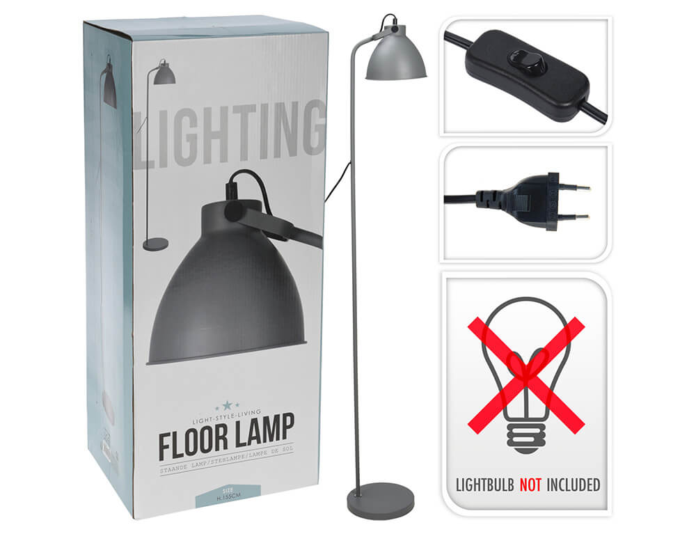 Ένα μοντέρνο όρθιο φωτιστικό που διακρίνεται από μινιμαλιστικό στυλ και απλή φόρμα. Ταιριάζει τέλεια σε αυστηρούς εσωτερικούς χώρους διακοσμημένους με βιομηχανικό στιλ. Το φωτιστικό είναι πολύ ευέλικτο, αφού μπορείτε να κατευθύνετε τη δέσμη φωτός όπου θέλετε.. Θα είναι τέλειο στο σαλόνι, στο υπνοδωμάτιο, στο παιδικό δωμάτιο, στο χολ, στο γραφείο ή στο γραφείο. Το μεταλλικό φωτιστικό δαπέδου έχει ένα ενδιαφέρον, μικρού μεγέθους αμπαζούρ που μπορεί να ρυθμιστεί ελεύθερα. Η μεγάλη βάση εξασφαλίζει τη σταθερότητά του. Το γκρι χρώμα το κάνει να ταιριάζει με τη διακόσμηση οποιουδήποτε δωματίου.