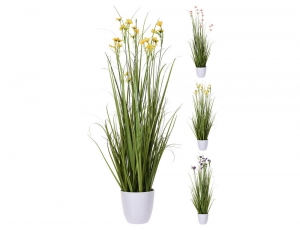 Τεχνητό φυτό σε γλάστρα Γρασίδι με άνθος, 65cm, σε 4 επιλογές χρώματος