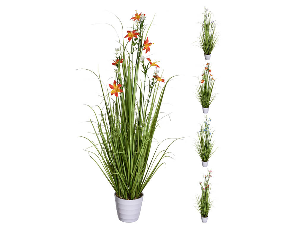 Τεχνητό φυτό σε γλάστρα Γρασίδι με άνθος, 98cm, σε 4 επιλογές χρώματος