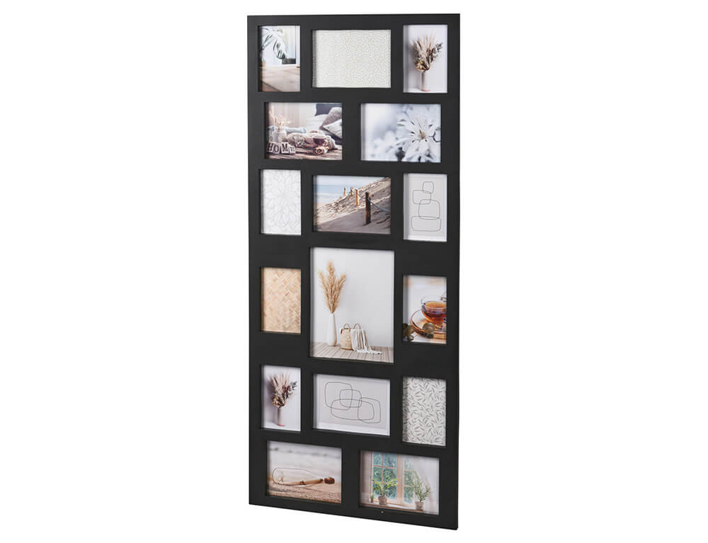 Κορνίζα τοίχου με θέσεις για 16 φωτογραφίες σε διάφορα επίπεδα. Είναι κατασκευασμένη από πλαστικό σε μαύρη απόχρωση. Είναι ιδανική για να διακοσμήσετε οποιοδήποτε χώρο του σπιτιού ή του γραφείου σας με τις πιο όμορφες αναμνήσεις σας!