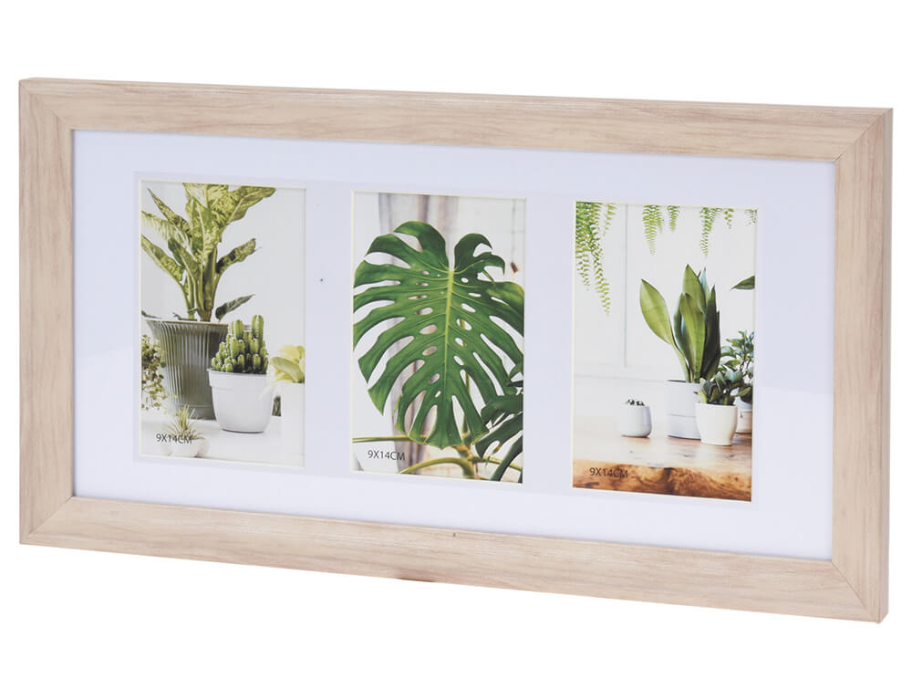 Κορνίζα H&S Collection με 3 θέσεις, πασπαρτού, βάση, διαστάσεις 24x44cm και διαστάσεις φωτογραφίας 9x14cm