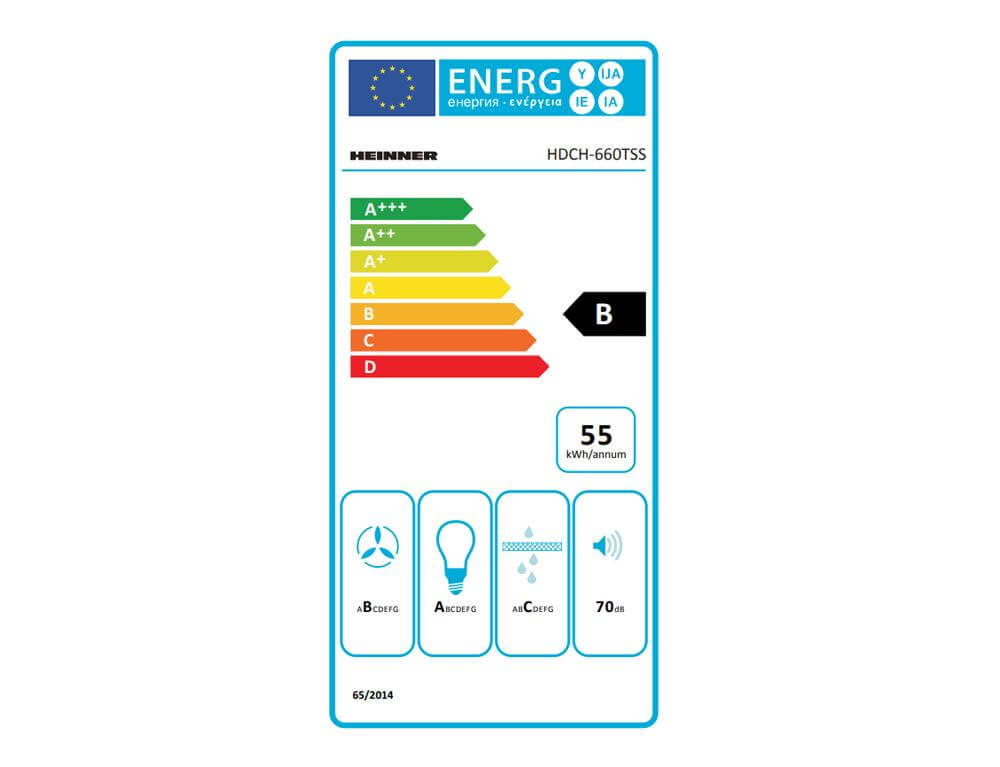 Απορροφητήρας Heinner HDCH-660TSS με πλάτος 60cm και απορροφητική ισχύ 586 m³/h