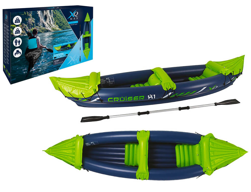 Σετ φουσκωτό κανό καγιάκ XQMAX Cruiser X1 2 θέσεων, με διπλό κουπί και σχοινί ασφαλείας, 325x81x53cm