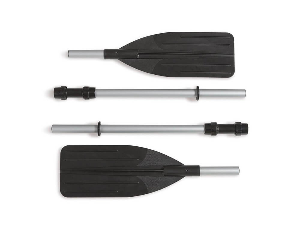 Περιλαμβάνονται επίσης δύο κουπιά αλουμινίου 122cm και μια αντλία υψηλής απόδοσης Intex για εύκολο φούσκωμα και ξεφούσκωμα.