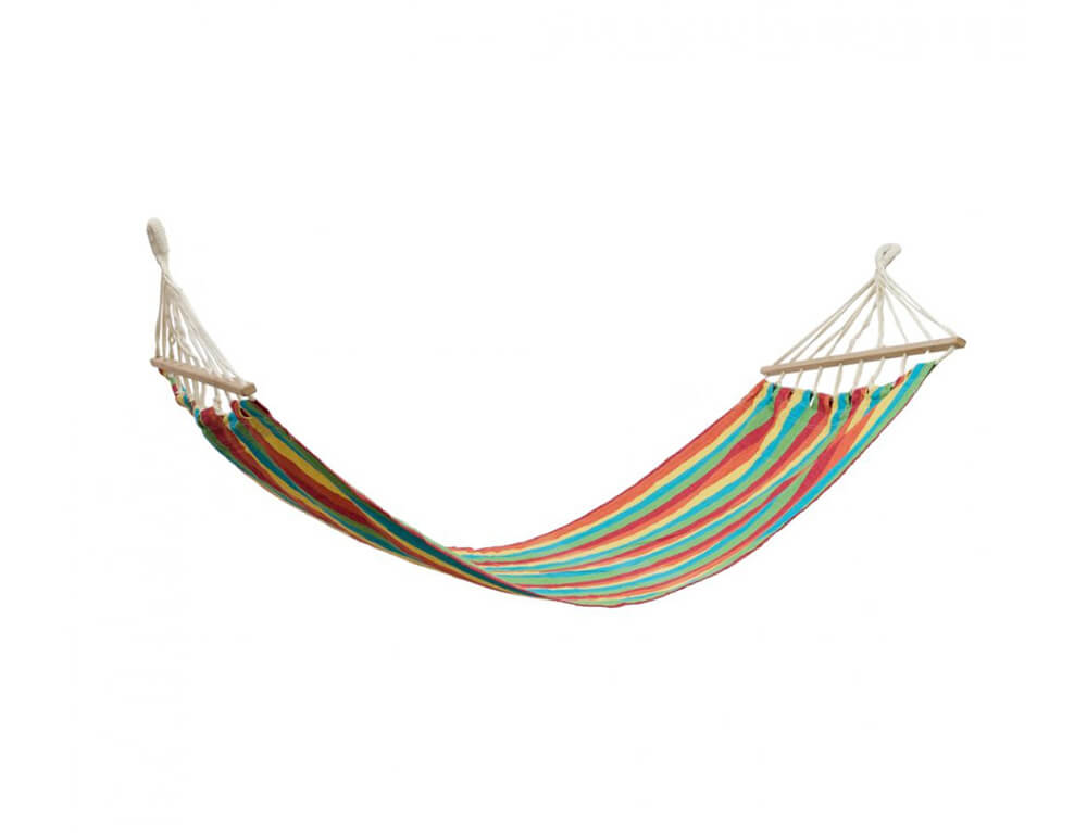Απολαύστε ένα απόγευμα στον ήλιο ή χαλαρώστε με ένα καλό βιβλίο στη σκιά με αυτήν την αιώρα. Είναι κατασκευασμένη από πολυεστέρα και βαμβάκι, ενώ διαθέτει σχοινιά και στις δύο πλευρές για να την κρεμάσετε. Παράλληλα υπάρχει για καλύτερη στήριξη ξύλινο πλαίσιο στις άκρες της αιώρας.