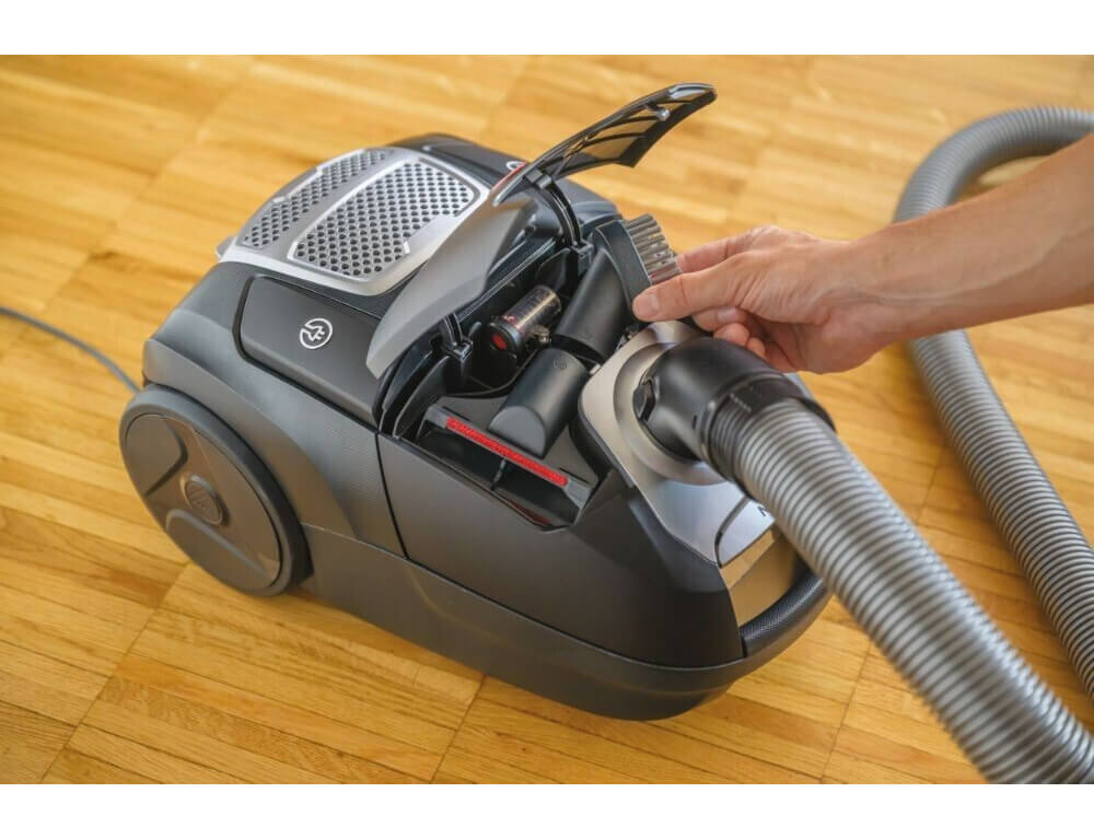 Χάρη στο ενσωματωμένο πορτάκι , μπορείτε εύκολα να έχετε πρόσβαση στο ρύγχος γωνιών, τη βούρτσα ξεσκόνωσης και το ακροφύσιο επίπλων. Εξοικονομήστε χώρο, χρόνο και δεν θα χάσετε ποτέ ξανά κάποιο αξεσουάρ!