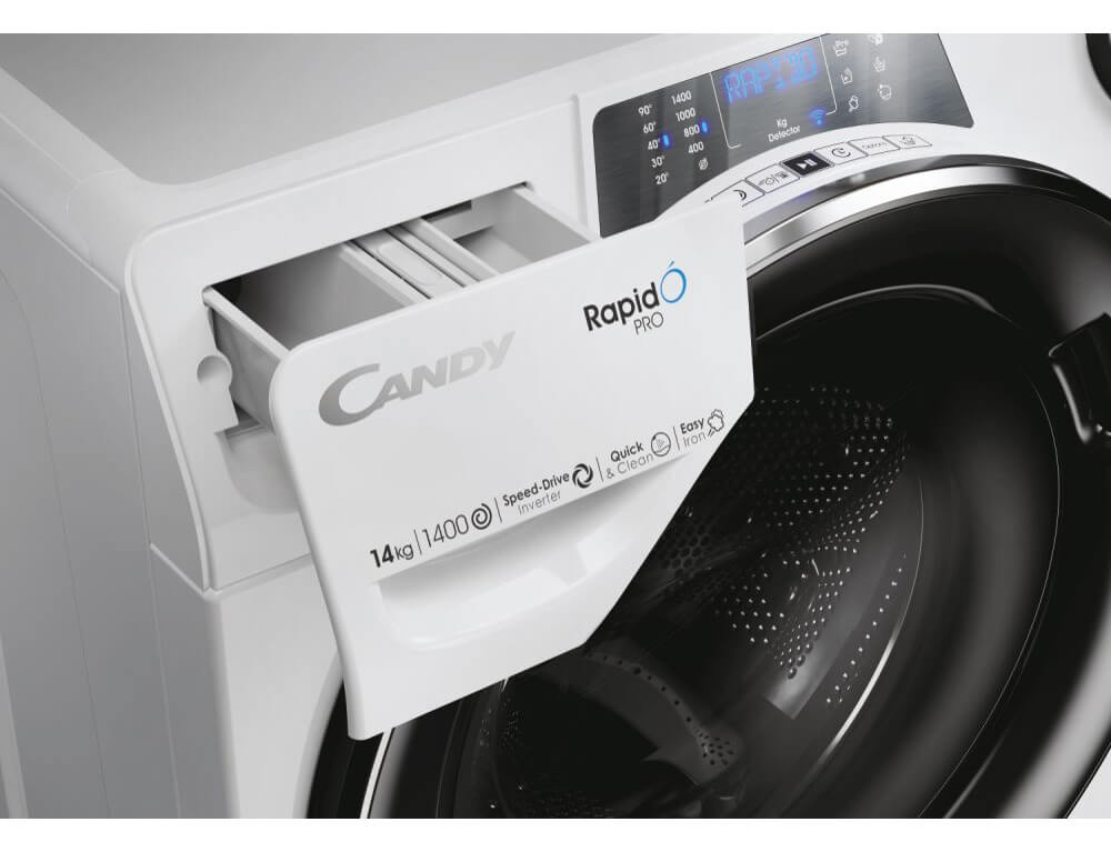 Πλυντήριο ρούχων Candy RapidÓ RP 4146BWMBC/1-S με Κινητήρα Inverter, Wi-Fi, Bluetooth, χωρητικότητα 14kg, 1400 rpm και ενεργειακή κλάση A