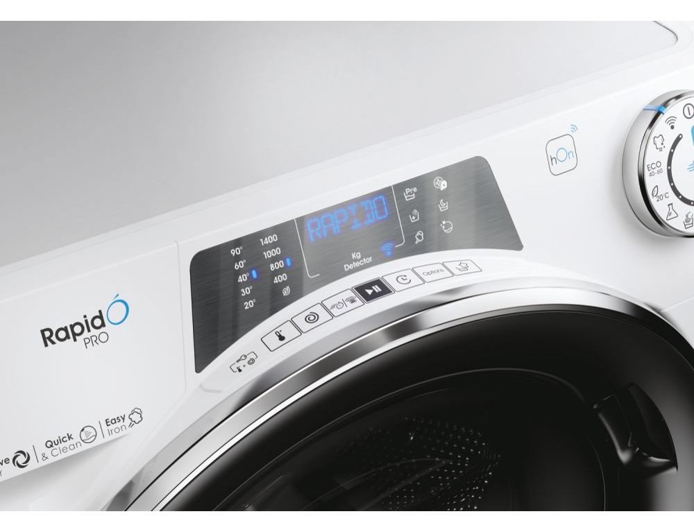 Το RapidÓ PRO είναι το πιο γρήγορο πλυντήριο που σας εξοικονομεί χρόνο με εξαιρετικά αποτελέσματα πλύσης: χάρη στον καινοτόμο κινητήρα Speed-Drive και το σύστημα Quick&Clean, το πλυντήριο με φινιστρίνι μπορεί να πλύνει πλήρως το φορτίο σε μόλις 39 λεπτά χωρίς να θυσιάζει την απόδοση. Επιπλέον, το πλυντήριο Candy RapidÓ PRO διαθέτει το νέο πρόγραμμα Steam Hygiene Plus, το πρόγραμμα που έχει ελεγχθεί και εγκριθεί από την Αρχή BAF, το οποίο εξασφαλίζει βαθύ καθαρισμό.