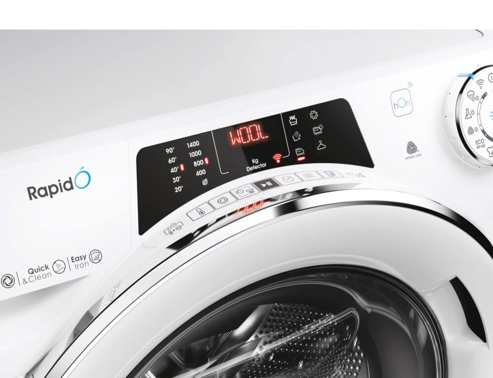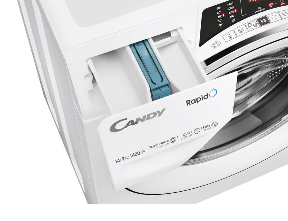 Για να κάνετε το καθημερινό σας πλύσιμο όσο το δυνατόν πιο εύκολο, το Candy RapidÓ είναι εξοπλισμένο με υψηλότερο και ευρύτερο άνοιγμα στην πόρτα. Αυτός ο νέος εργονομικός σχεδιασμός επιτρέπει την εύκολη φόρτωση και εκφόρτωση των ρούχων.