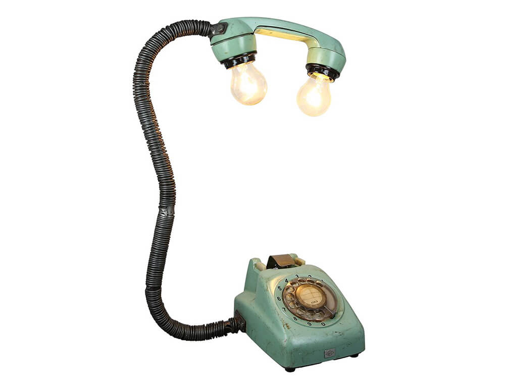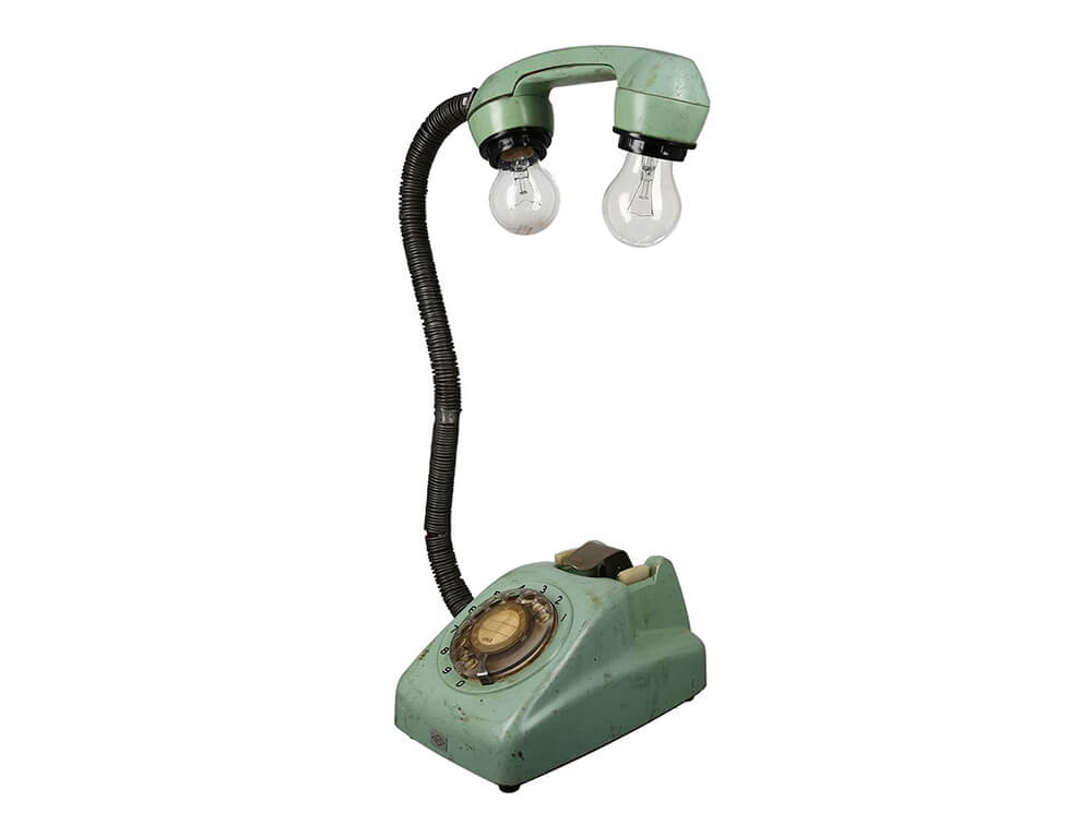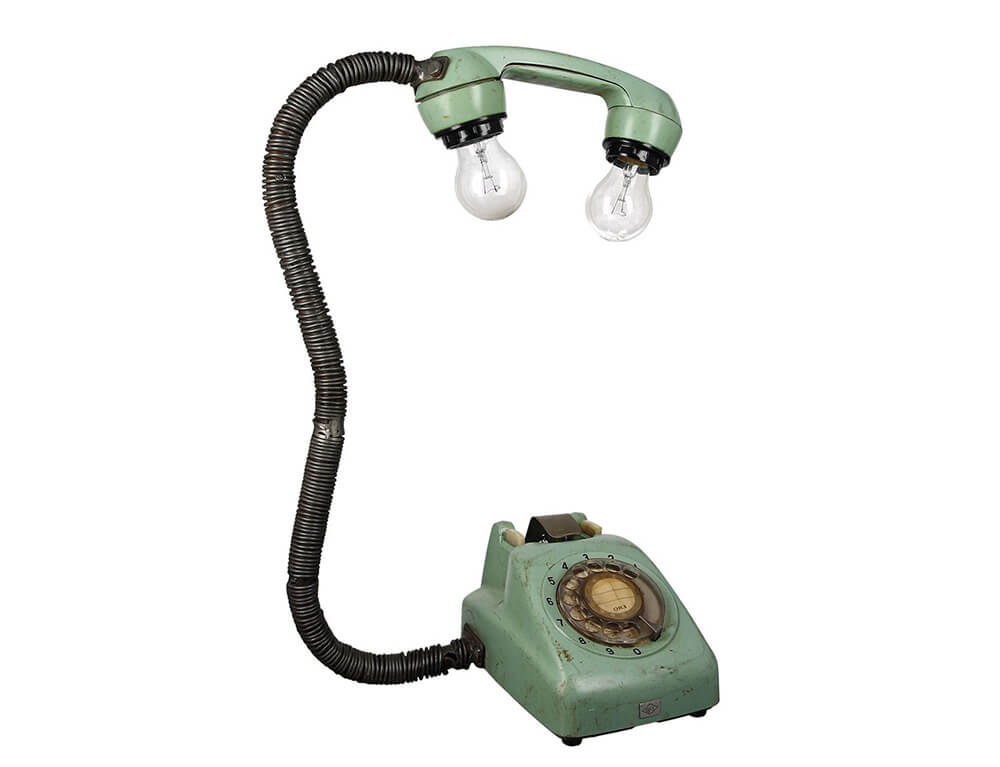 Το επιτραπέζιο φωτιστικό σε σχήμα τηλεφώνου αποτελεί μια μοναδική επιλογή για τη διακόσμηση του σπιτιού σας. Είναι κατασκευασμένο από μέταλλο και έχει πράσινο χρώμα με καφέ λεπτομέρειες που θυμίζουν σκουριά. Αυτός ο ξεχωριστός χρωματισμός θα δώσει μια vintage - antique πνοή στο χώρο σας.