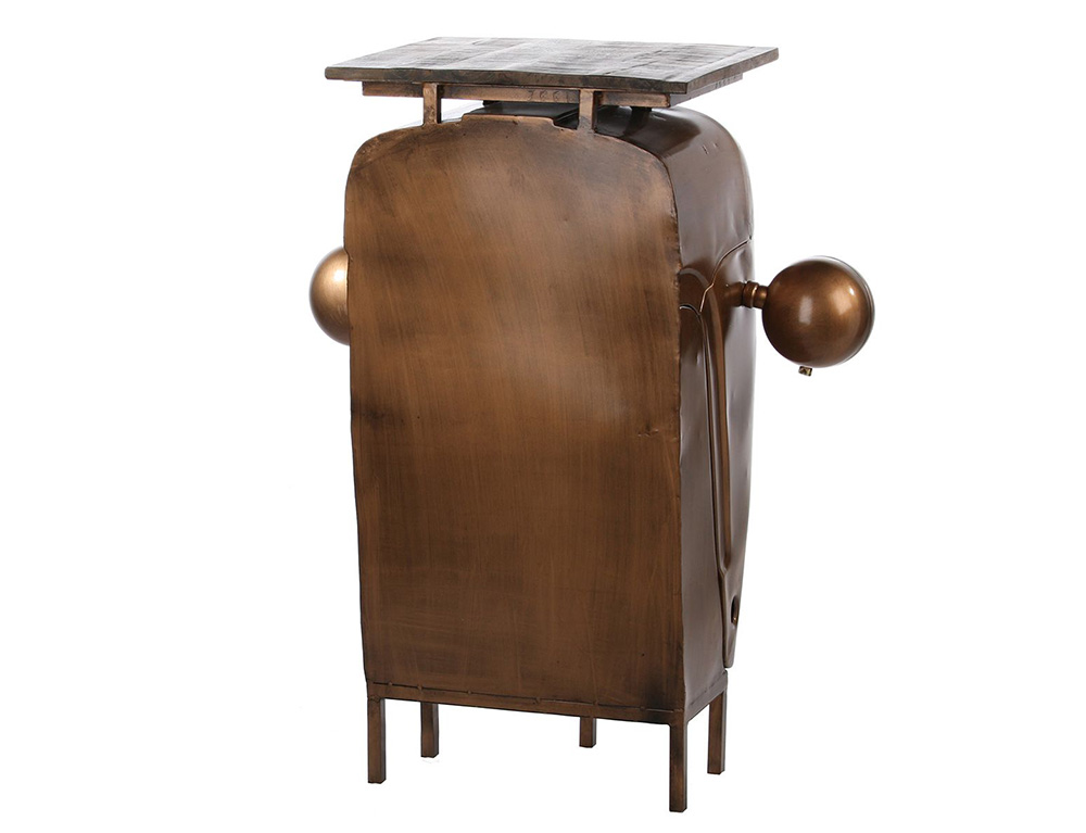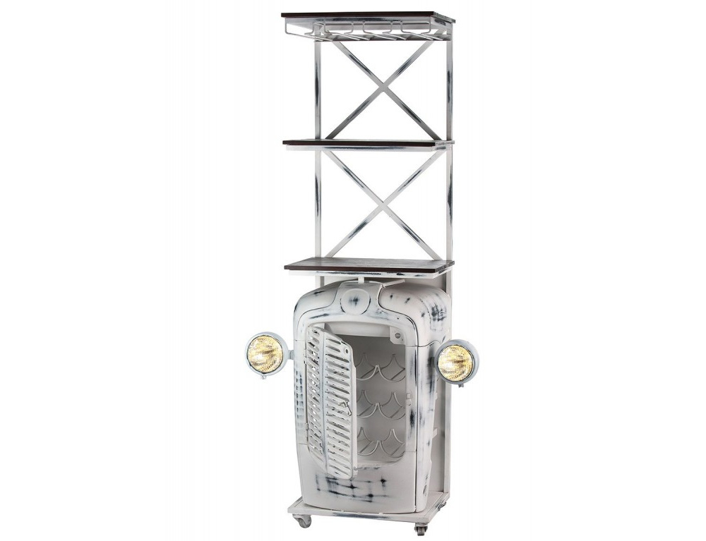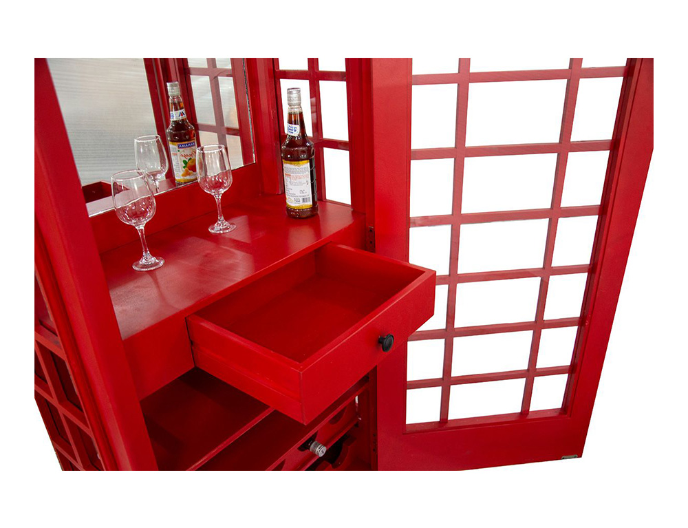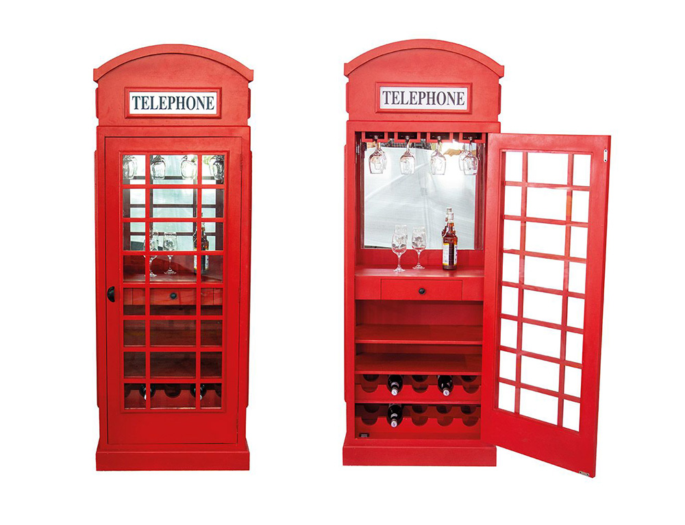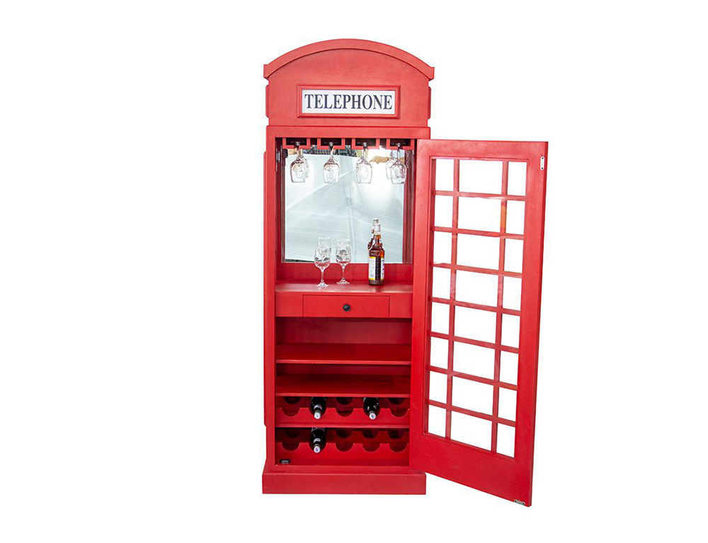 Βάση για μπουκάλια σε σχήμα βαλίτσας με δερμάτινη όψη και κατασκευή από ξύλο. Όταν είναι κλειστή, αποτελεί ένα κομψό χαρακτηριστικό του δωματίου, αλλά μπορεί ανά πάσα στιγμή να παρουσιάσει το περιεχόμενό της στους καλεσμένους σας. Διαθέτει 8 θέσεις για μπουκάλια κρασιού, 7 ράφια για ποτήρια ή επιπλέον μπουκάλια ποτών και 3 συρτάρια. Επίσης, έχει έξι ρόδες για να την μεταφέρετε όπου θέλετε πιο εύκολα.