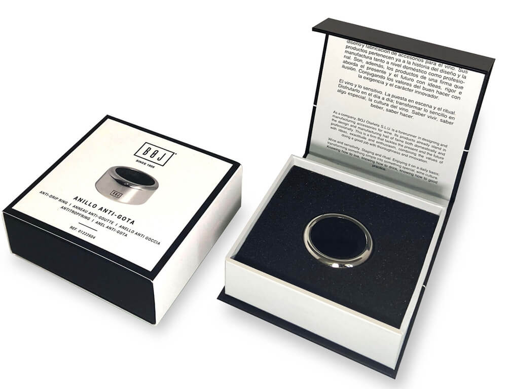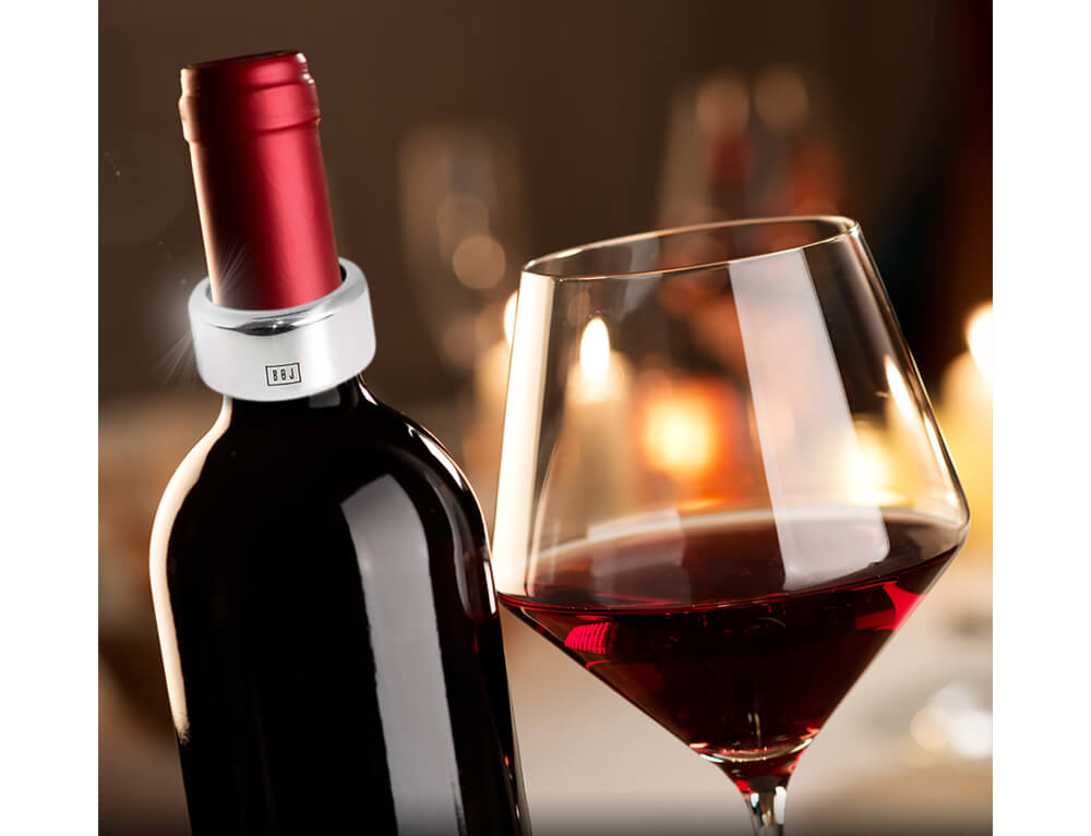 To δαχτυλίδι τοποθετείται στο λαιμό του μπουκαλιού με μεγάλη ευκολία και μαζεύει τις σταγόνες που στο σερβίρισμα του κρασιού μένουν πάντα έξω. Είναι το τέλειο αξεσουάρ για να αποφύγετε να λερώσετε το μπουκάλι ή το τραπέζι.