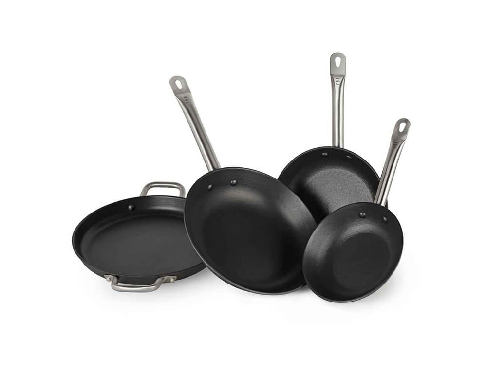 Tο σετ με τηγάνια της εταιρείας BOJ είναι ένα απαραίτητο προϊόν για κάθε λάτρη της μαγειρικής. Το σώμα είναι κατασκευασμένο απο χυτοσίδηρο, ένα υλικό ιδανικό για αργό μαγείρεμα αφού κατανέμει ομοιόμορφα τη θερμότητα. Οι λαβές είναι από ανοξείδωτο ατσάλι με δύο πριτσίνια για περισσότερη αντοχή και έχει εσωτερική αντικολλητική επίστρωση ελβετικής κατασκευής, ILAG. Είναι κατάλληλα για κάθε είδους εστίας και φούρνου και αντέχει θερμοκρασίες μέχρι 260ºC.