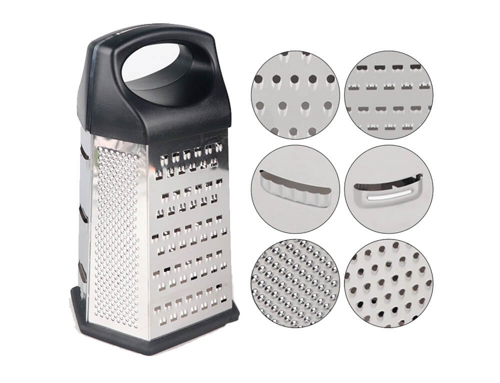Ο τρίφτης της εταιρείας BOJ διαθέτει 6 πλευρές, ώστε να μπορείτε να τρίψετε ό,τι θέλετε σε διαφορετικά μεγέθη. Είναι κατασκευασμένος από ανοξείδωτο ατσάλι και διαθέτει λαβή και βάση από πλαστικό. Η λαβή και η βάση είναι αντιολισθητικές και εξασφαλίζεται καλύτερη σταθερότητα και περισσότερη άνεση.