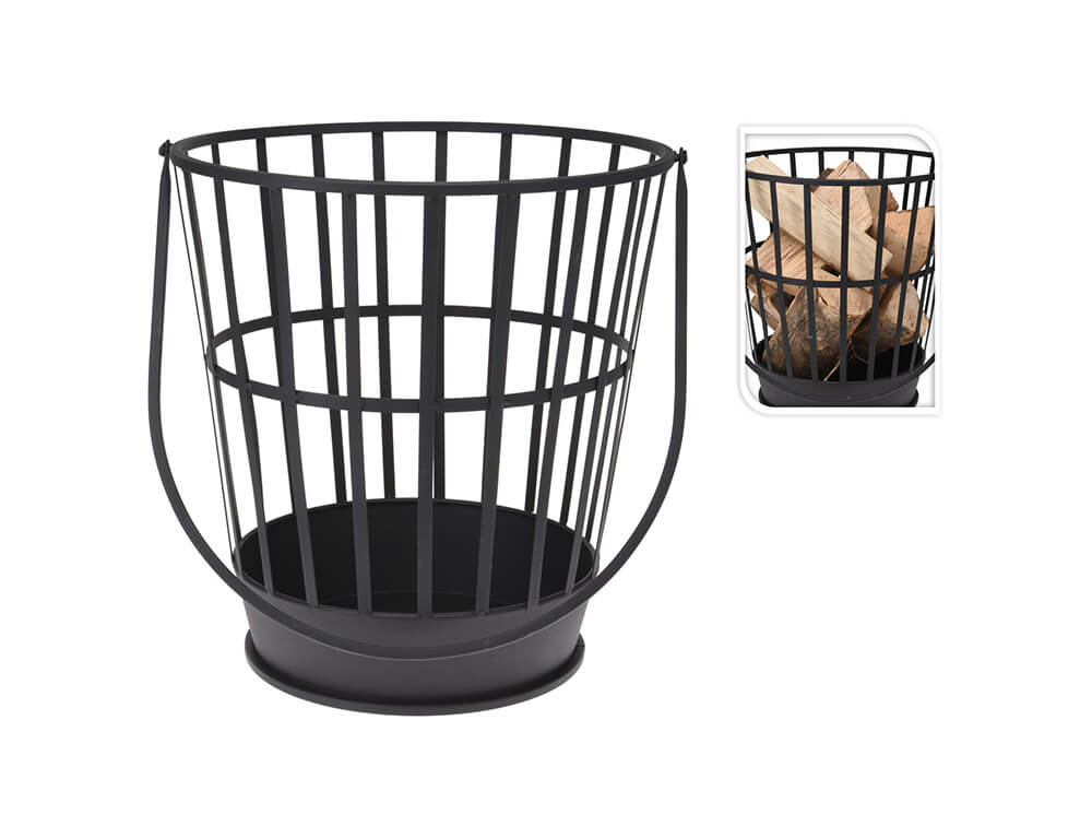 Ξυλιέρα για να μεταφέρετε και να αποθηκεύετε ξύλα για το τζάκι. Είναι κατασκευασμένη από μέταλλο σε μαύρη απόχρωση και είναι ανθεκτική σε θερμοκρασία έως και 800°C. Διαθέτει χερούλι για να μπορείτε να το μεταφέρετε όπου επιθυμείτε με ευκολία.