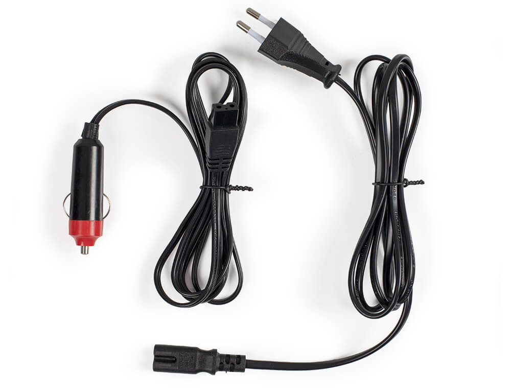 Πρακτικό, χάρη στα δύο καλώδια που περιλαμβάνονται, μπορεί να συνδεθεί στο ρεύμα ή στον αναπτήρα του αυτοκινήτου, ώστε να απολαμβάνετε δροσερά ποτά ακόμα και όταν ταξιδεύετε