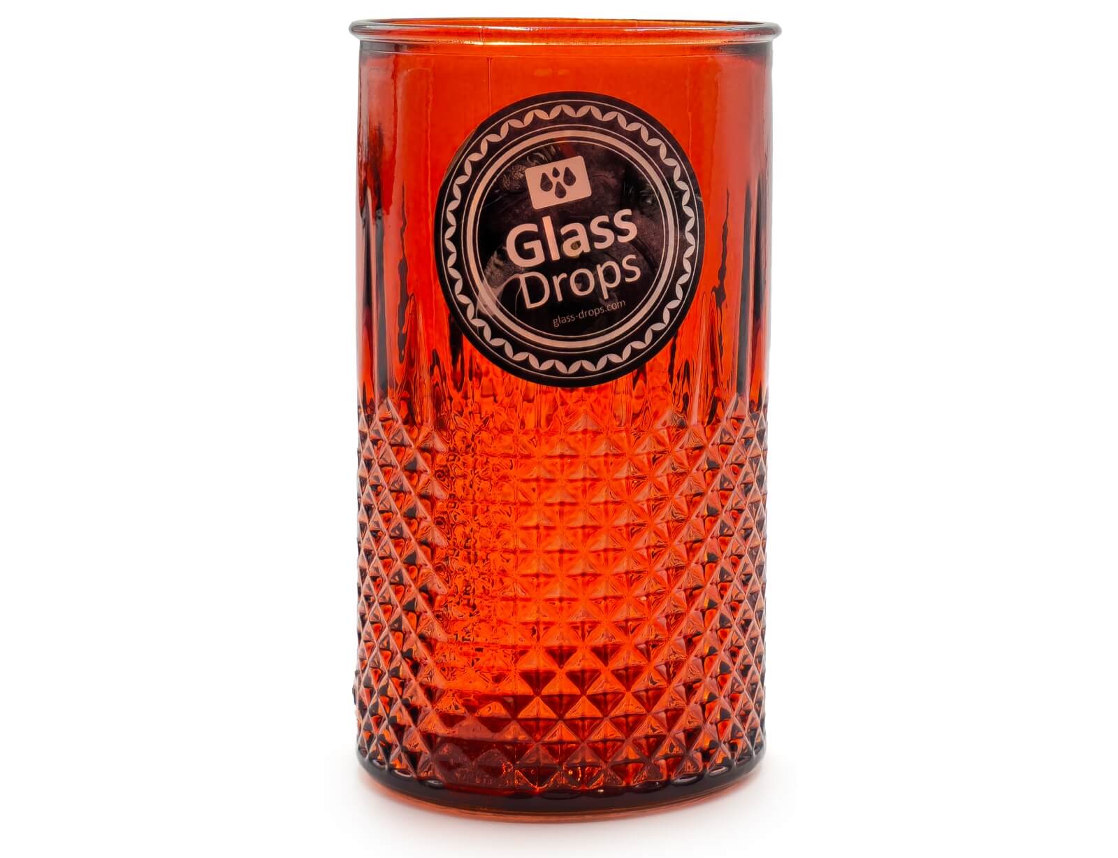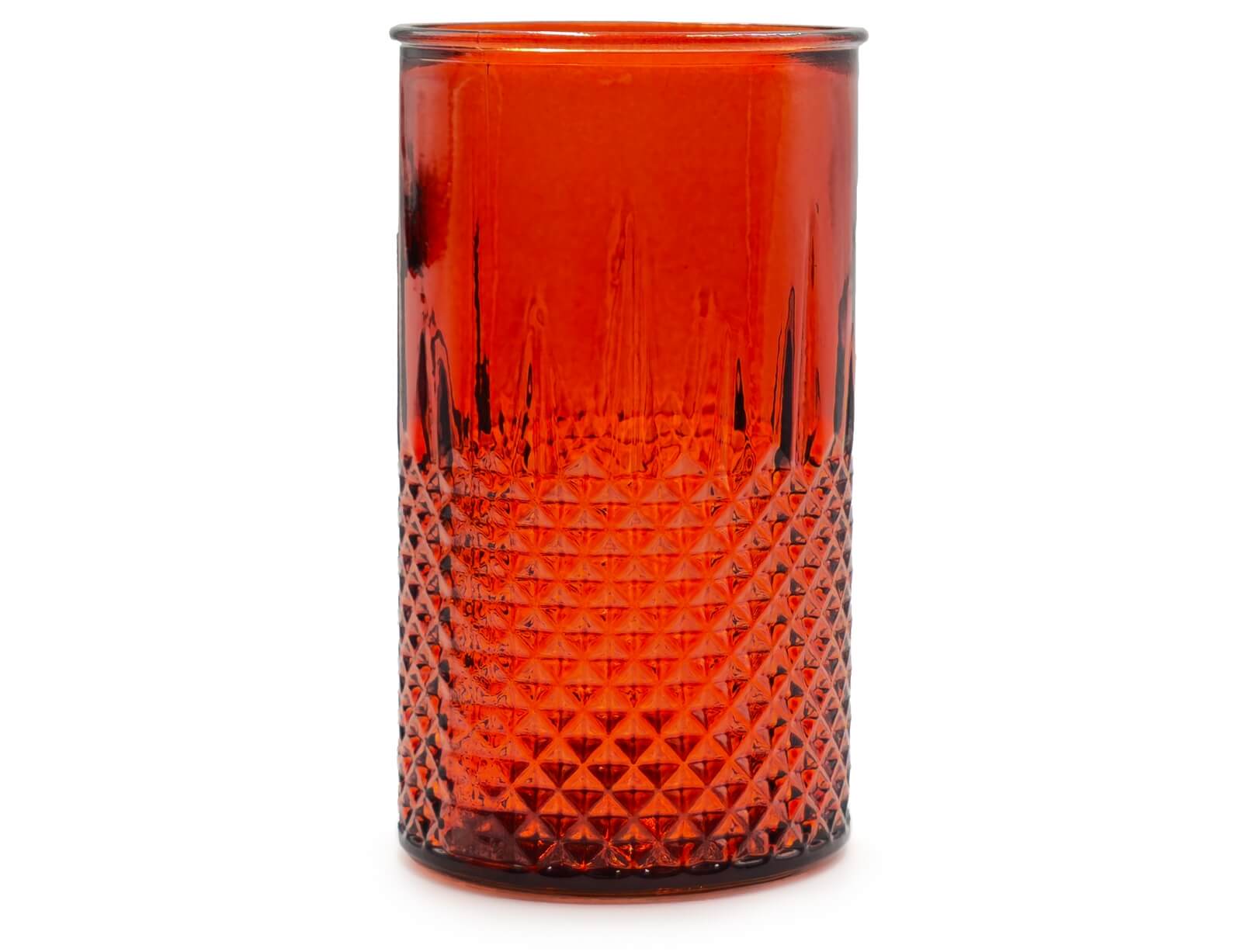 Ποτήρι με περίτεχνο και ανάγλυφο σχεδιασμό, ιδανικό για να σερβίρετε νερό, χυμό ή οποιοδήποτε ρόφημα επιθυμείτε! Κατασκευάζεται από 100% ανακυκλωμένο γυαλί και διαθέτει μια πορτοκαλί απόχρωση. Ένα εντυπωσιακό ποτήρι τόσο αισθητικά όσο και περιβαλλοντικά!