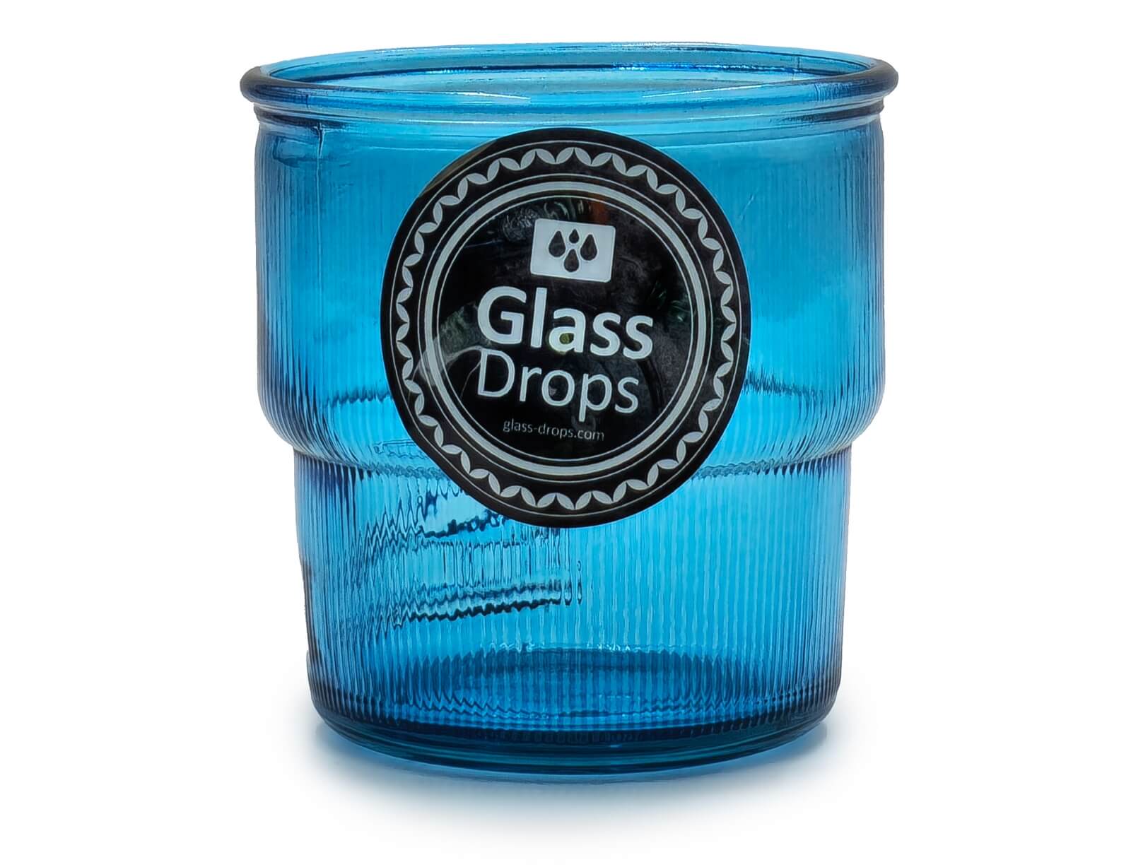 Ποτήρι Glass Drops Ribbed (2415DB09) Από ανακυκλωμένο γυαλί, Χωρητικότητας 300ml, Διαστάσεων Ø 9 x Υ 9 cm, Aqua Blue