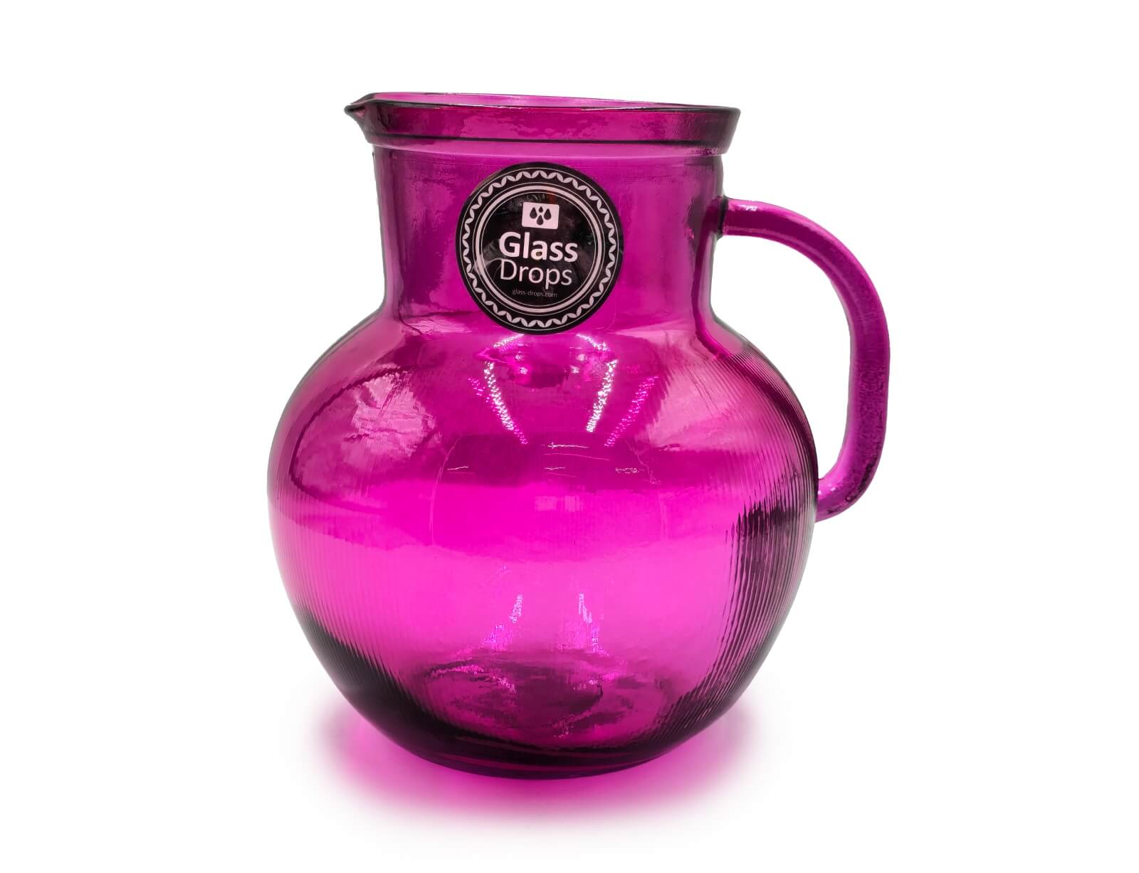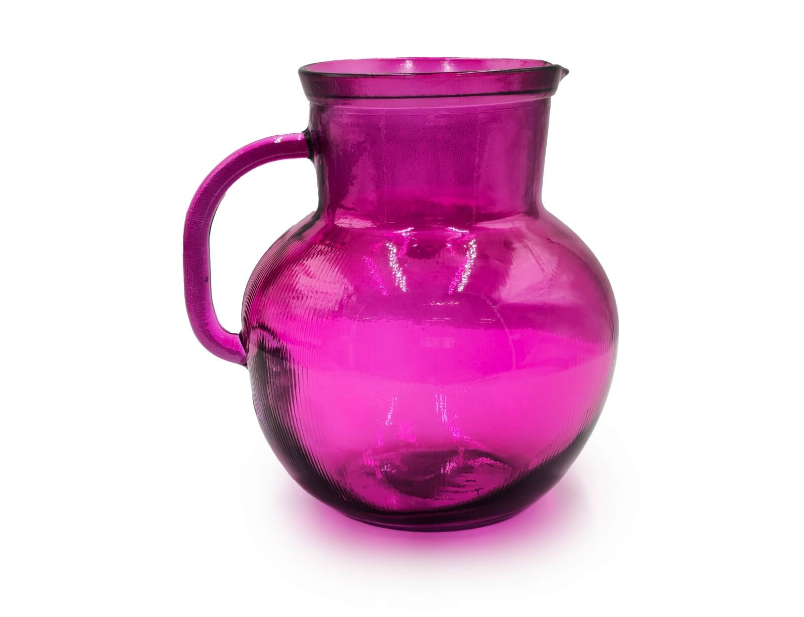 Κανάτα με χερούλι Glass Drops Ribbed (3198DB276) Από ανακυκλωμένο γυαλί, Χωρητικότητας 2.3L, Διαστάσεων Ø 20 x Υ 20 cm, Magenta