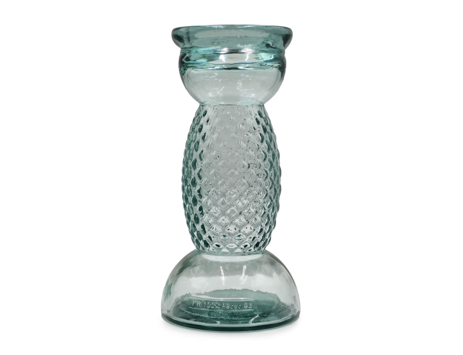 Διακοσμήστε το χώρο σας με το κηροπήγιο της εταιρείας Glass Drops. έχει περίτεχνο και ανάγλυφο σχεδιασμό, ο οποίος θα δώσει ένα τόνο κομψότητας στο σπίτι σας. Eίναι κατασκευασμένο από 100% ανακυκλωμένο γυαλί και διαθέτει μια ήπια πράσινη απόχρωση.