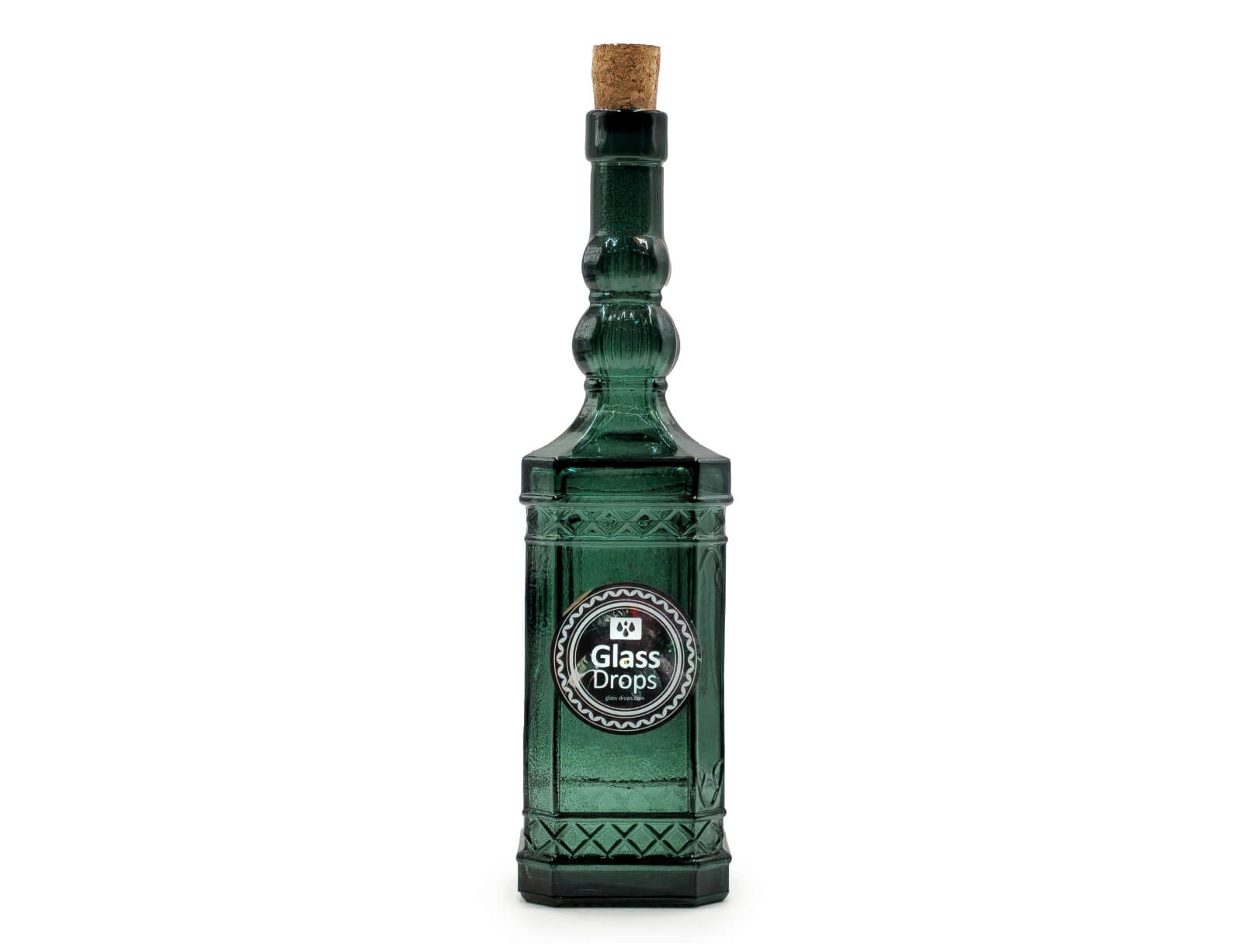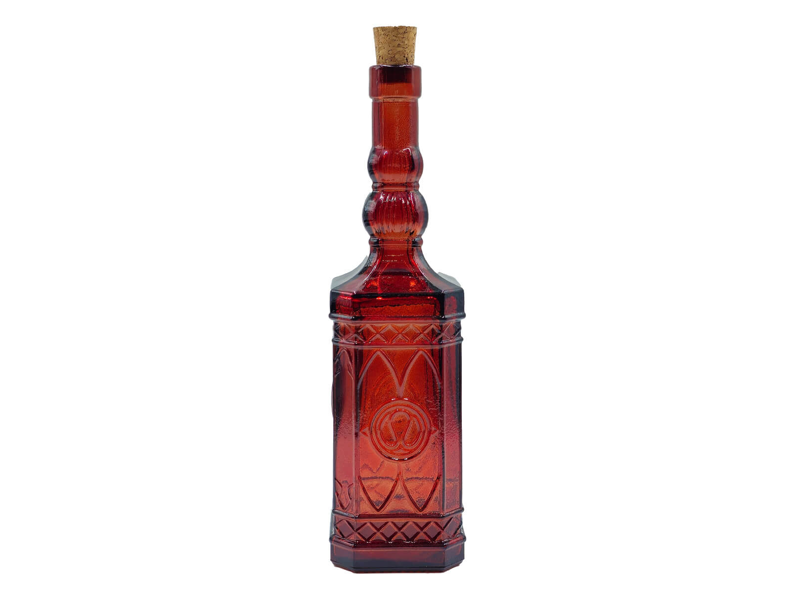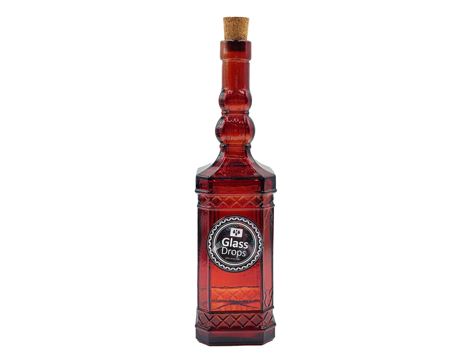 Μπουκάλι με περίτεχνο και ανάγλυφο σχεδιασμό από την εταιρεία Glass Drops. Eίναι ιδανικό για την αποθήκευση και σερβίρισμα λαδιού, νερού, χυμών, ποτών και ότι άλλο επιθυμείτε. Διαθέτει ένα πώμα από φελλό, το οποίο εξασφαλίζει ότι το περιεχόμενο του μπουκαλιού θα παραμείνει φρέσκο. Θα δώσει μια ξεχωριστή νότα στην κουζίνα και το τραπέζι σας. Μπορεί να χρησιμοποιηθεί και ως διακοσμητικό. Eίναι κατασκευασμένο από 100% ανακυκλωμένο γυαλί και διαθέτει μια κόκκινη απόχρωση.