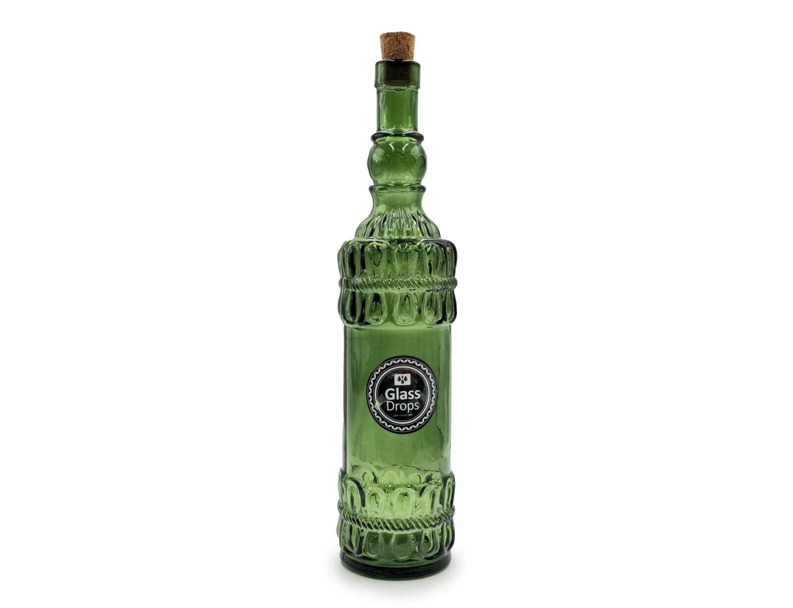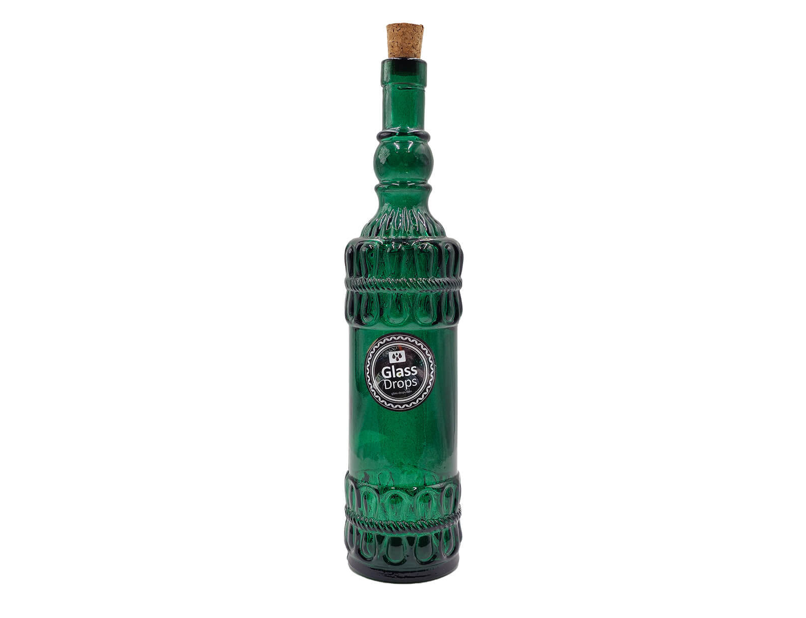 Μπουκάλι με περίτεχνο και ανάγλυφο σχεδιασμό από την εταιρεία Glass Drops. Eίναι ιδανικό για την αποθήκευση και σερβίρισμα λαδιού, νερού, χυμών, ποτών και ότι άλλο επιθυμείτε. Διαθέτει ένα πώμα από φελλό, το οποίο εξασφαλίζει ότι το περιεχόμενο του μπουκαλιού θα παραμείνει φρέσκο. Θα δώσει μια ξεχωριστή νότα στην κουζίνα και το τραπέζι σας. Μπορεί να χρησιμοποιηθεί και ως διακοσμητικό. Eίναι κατασκευασμένο από 100% ανακυκλωμένο γυαλί και διαθέτει μια κόκκινη απόχρωση.
