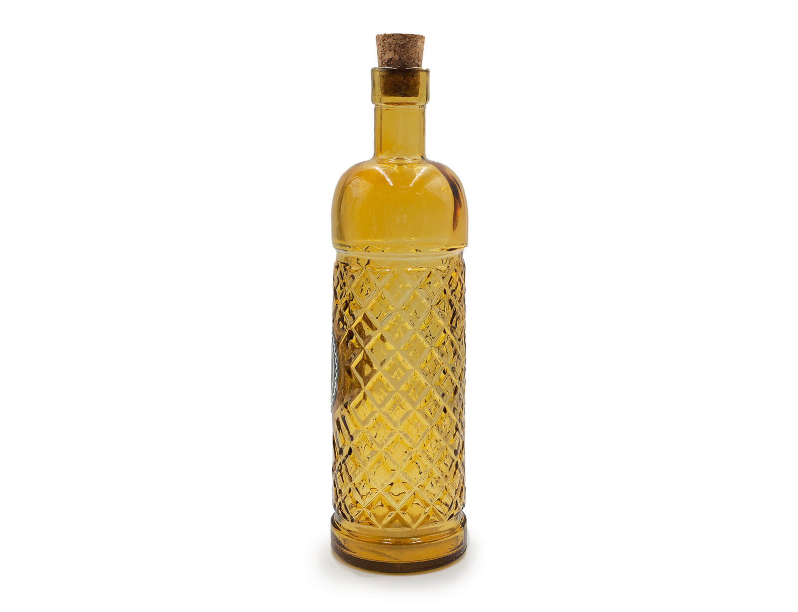 Μπουκάλι με περίτεχνο και ανάγλυφο σχεδιασμό από την εταιρεία Glass Drops. Eίναι ιδανικό για την αποθήκευση και σερβίρισμα λαδιού, νερού, χυμών, ποτών και ότι άλλο επιθυμείτε. Διαθέτει ένα πώμα από φελλό, το οποίο εξασφαλίζει ότι το περιεχόμενο του μπουκαλιού θα παραμείνει φρέσκο. Θα δώσει μια ξεχωριστή νότα στην κουζίνα και το τραπέζι σας. Μπορεί να χρησιμοποιηθεί και ως διακοσμητικό. Eίναι κατασκευασμένο από 100% ανακυκλωμένο γυαλί και διαθέτει μια κίτρινη απόχρωση.