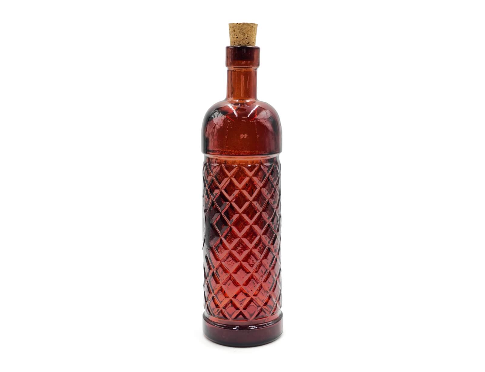 Μπουκάλι με περίτεχνο και ανάγλυφο σχεδιασμό από την εταιρεία Glass Drops. Eίναι ιδανικό για την αποθήκευση και σερβίρισμα λαδιού, νερού, χυμών, ποτών και ότι άλλο επιθυμείτε. Διαθέτει ένα πώμα από φελλό, το οποίο εξασφαλίζει ότι το περιεχόμενο του μπουκαλιού θα παραμείνει φρέσκο. Θα δώσει μια ξεχωριστή νότα στην κουζίνα και το τραπέζι σας. Μπορεί να χρησιμοποιηθεί και ως διακοσμητικό. Eίναι κατασκευασμένο από 100% ανακυκλωμένο γυαλί και διαθέτει μια κόκκινη απόχρωση.