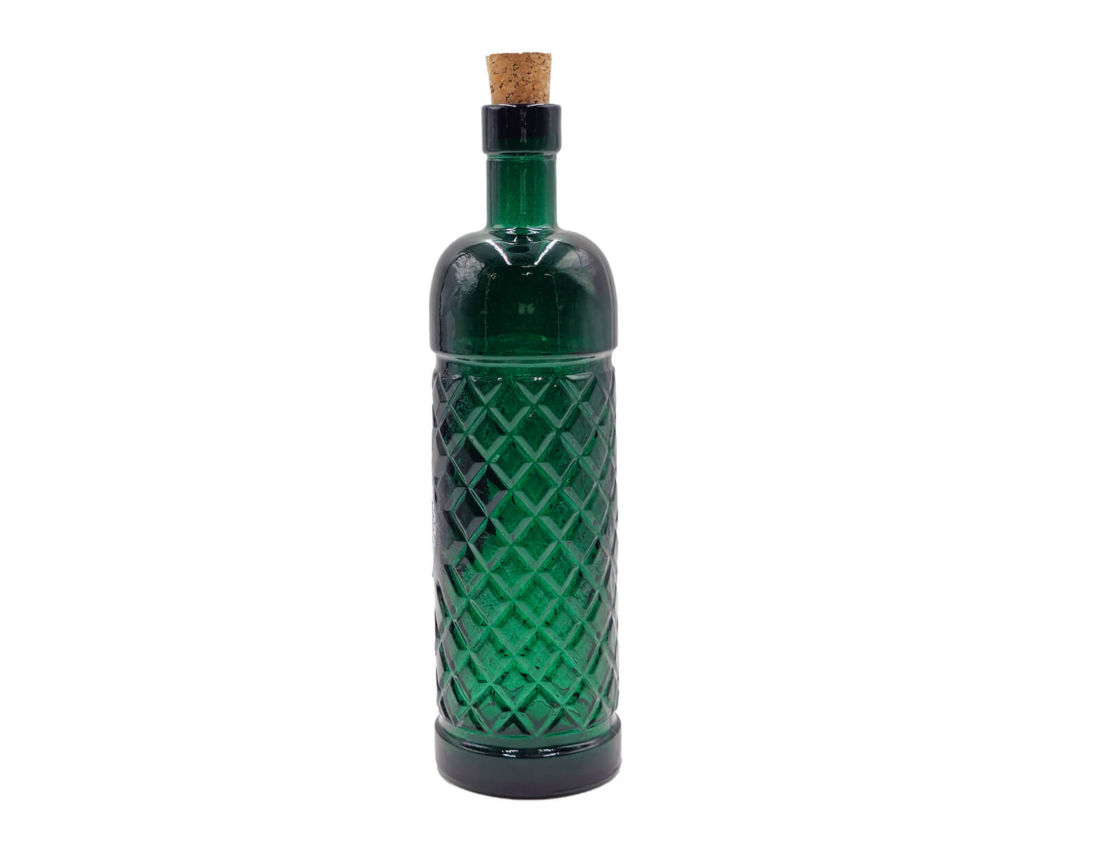 Μπουκάλι με περίτεχνο και ανάγλυφο σχεδιασμό από την εταιρεία Glass Drops. Eίναι ιδανικό για την αποθήκευση και σερβίρισμα λαδιού, νερού, χυμών, ποτών και ότι άλλο επιθυμείτε. Διαθέτει ένα πώμα από φελλό, το οποίο εξασφαλίζει ότι το περιεχόμενο του μπουκαλιού θα παραμείνει φρέσκο. Θα δώσει μια ξεχωριστή νότα στην κουζίνα και το τραπέζι σας. Μπορεί να χρησιμοποιηθεί και ως διακοσμητικό. Eίναι κατασκευασμένο από 100% ανακυκλωμένο γυαλί και διαθέτει μια πράσινη απόχρωση.