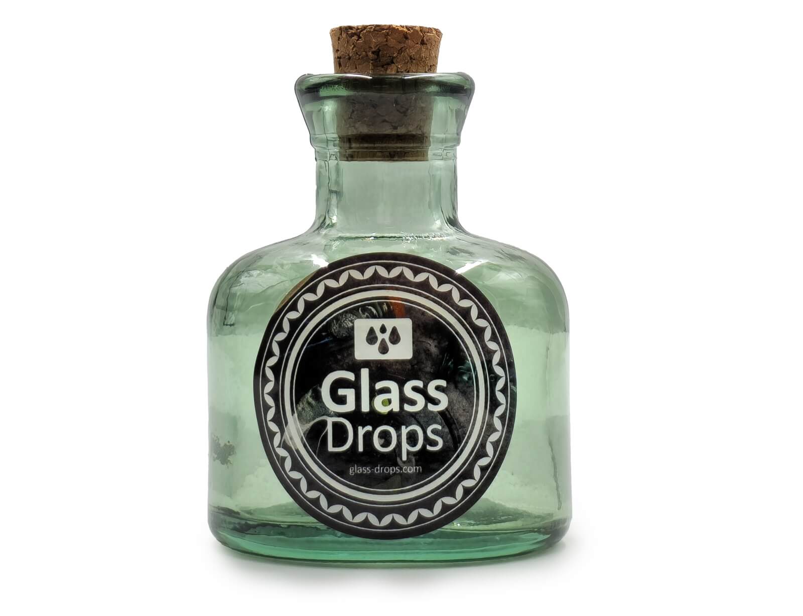 Γυάλινο μπουκαλάκι από την εταιρεία Glass Drops. Eίναι ιδανικό για την σερβίρισμα λαδιού, ξυδιού, αλλά και για αποθήκευση μπαχαρικών. Διαθέτει ένα πώμα από φελλό, το οποίο εξασφαλίζει ότι το περιεχόμενο του μπουκαλιού θα παραμείνει φρέσκο. Η απλότητά του θα δώσει μια ξεχωριστή νότα στην κουζίνα και το τραπέζι σας. Μπορεί να χρησιμοποιηθεί και ως διακοσμητικό. Eίναι κατασκευασμένο από 100% ανακυκλωμένο γυαλί και διαθέτει μια ήπια πράσινη απόχρωση.