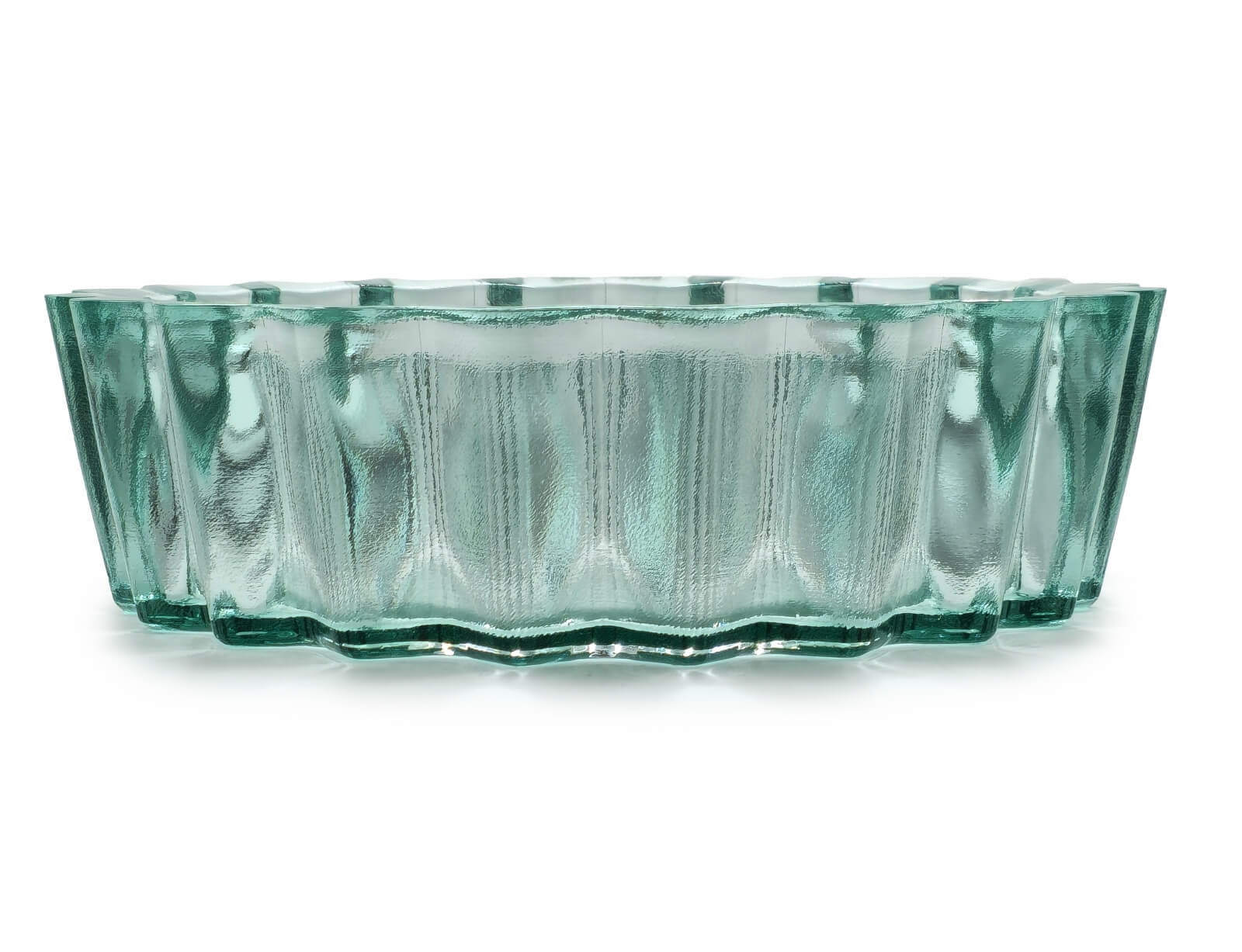 Διακοσμητικό μπωλ της εταιρείας Glass Drops με ανάγλυφες λεπτομέρειες. Ένα διακοσμητικό κατάλληλο για κάθε χώρο του σπιτιού σας. Είναι κατασκευασμένο από 100% ανακυκλωμένο γυαλί και διαθέτει μια ήπια πράσινη απόχρωση.