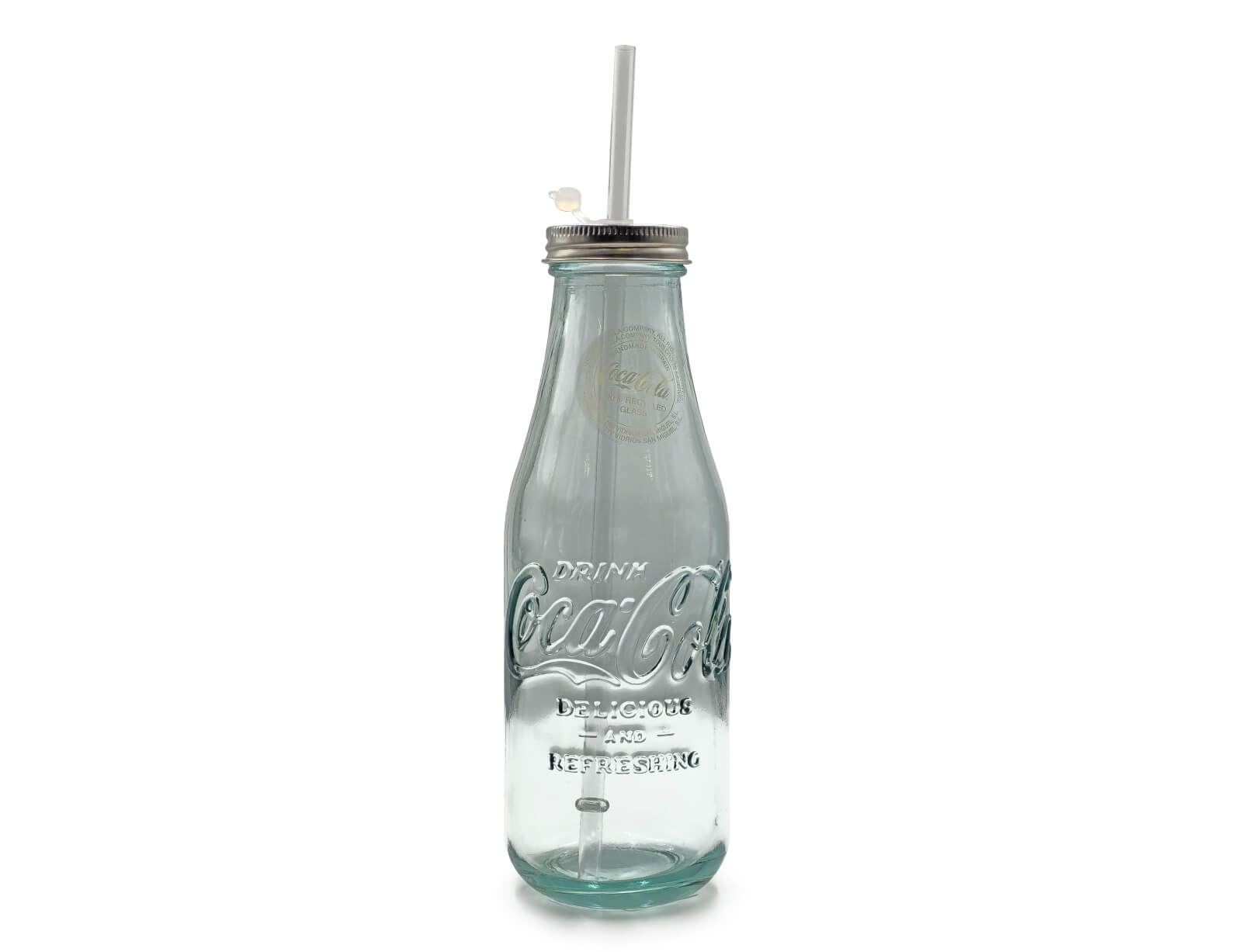 Μπουκάλι Glass Drops Coca Cola (9014) Με πώμα και καλαμάκι, Aπό 100% ανακυκλωμένο γυαλί, Xωρητικότητας 550ml, Διαστάσεων Ø 8 x Υ 28 cm