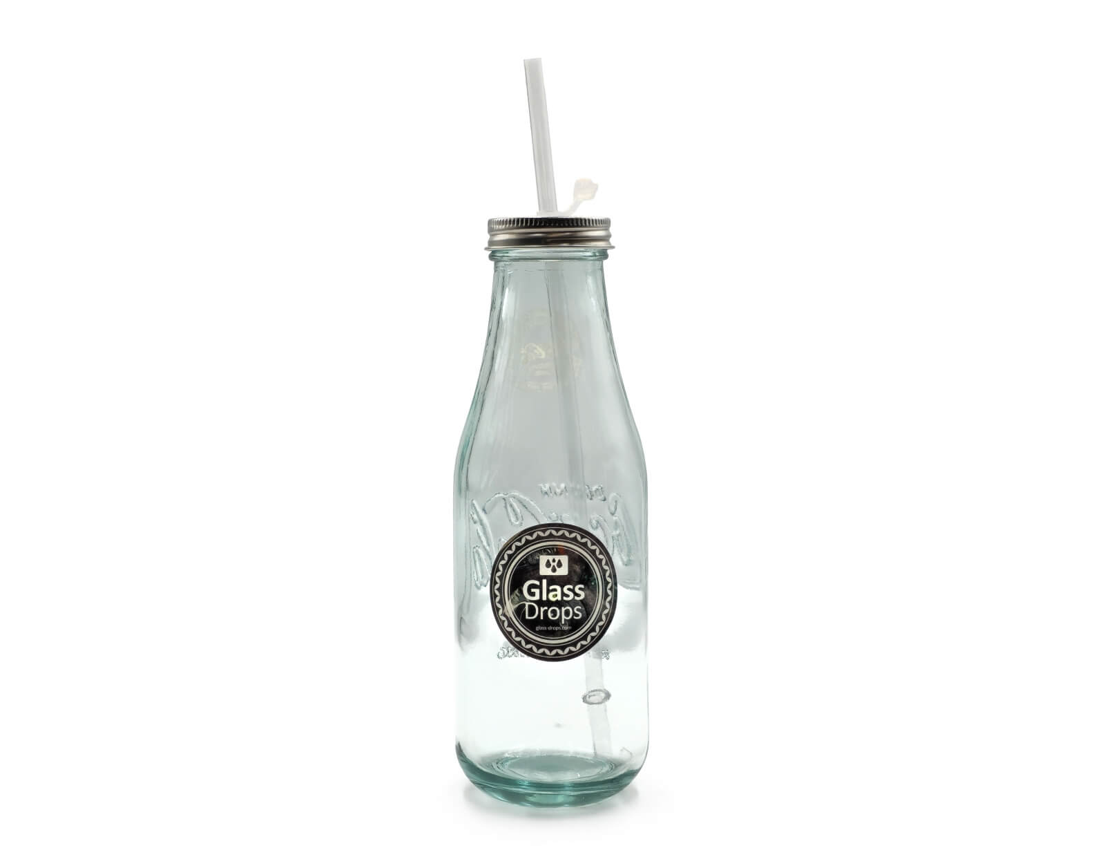 Μπουκάλι με πώμα και καλαμάκι, ιδανικό για να σερβίρετε νερό, χυμό ή οποιοδήποτε ρόφημα επιθυμείτε! Κατασκευάζεται από 100% ανακυκλωμένο γυαλί.