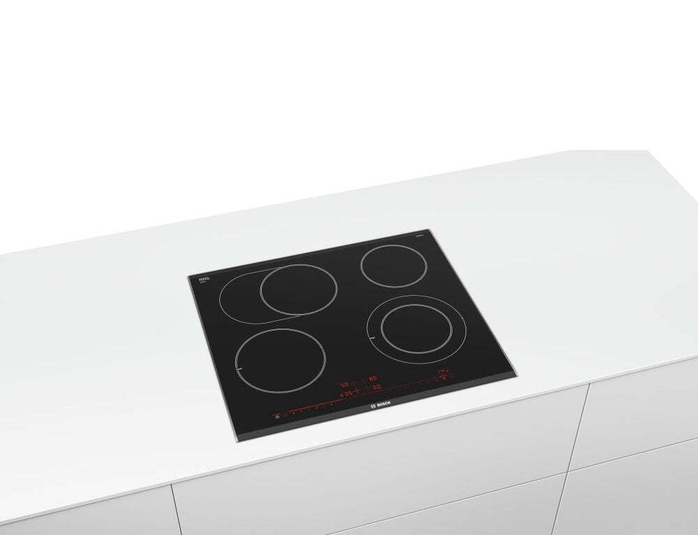 Εστία με κεραμική επιφάνεια υψηλής αντοχής, 4 ζώνες μαγειρέματος με 9 επίπεδα έντασης για κάθε ζώνη, συνδυάζοντας ακόμη και ταυτόχρονο μαγείρεμα σε 2 μεγάλες-μέσες κατσαρόλες.